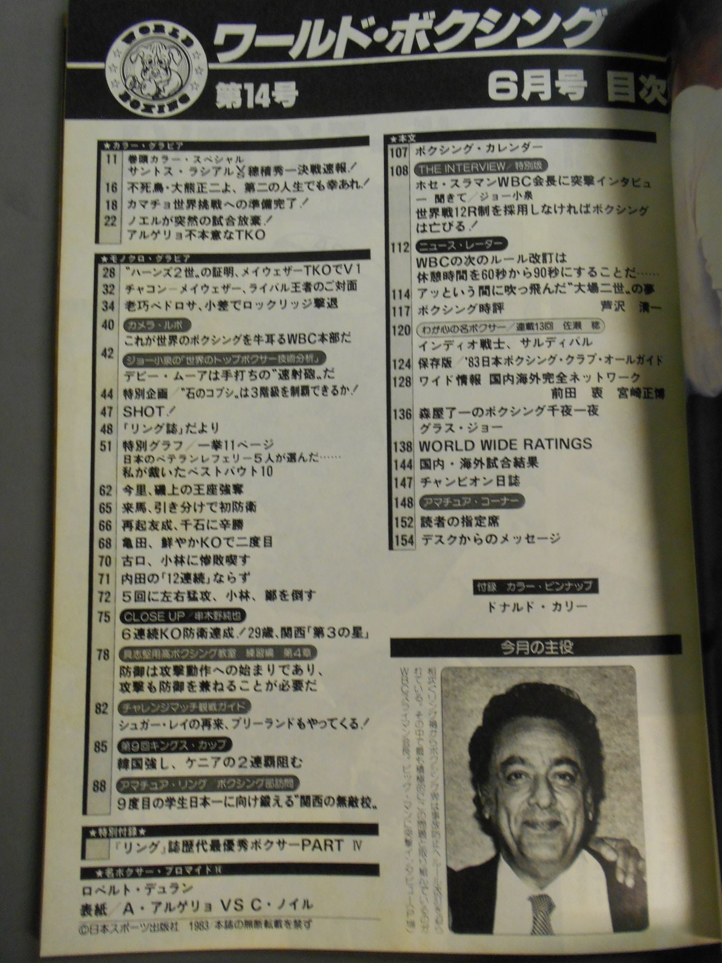 1983年 サントス・ラシアルvs穂積秀一決戦速報 / 【付録】×白黒ブロマイド(ロベルト・デュラン) 〇ピンナップ(ドナルド・カリー) 〇特別付録(「リング」誌歴代最優秀ボクサー PART4) 表紙:アルゲリョvsノイル