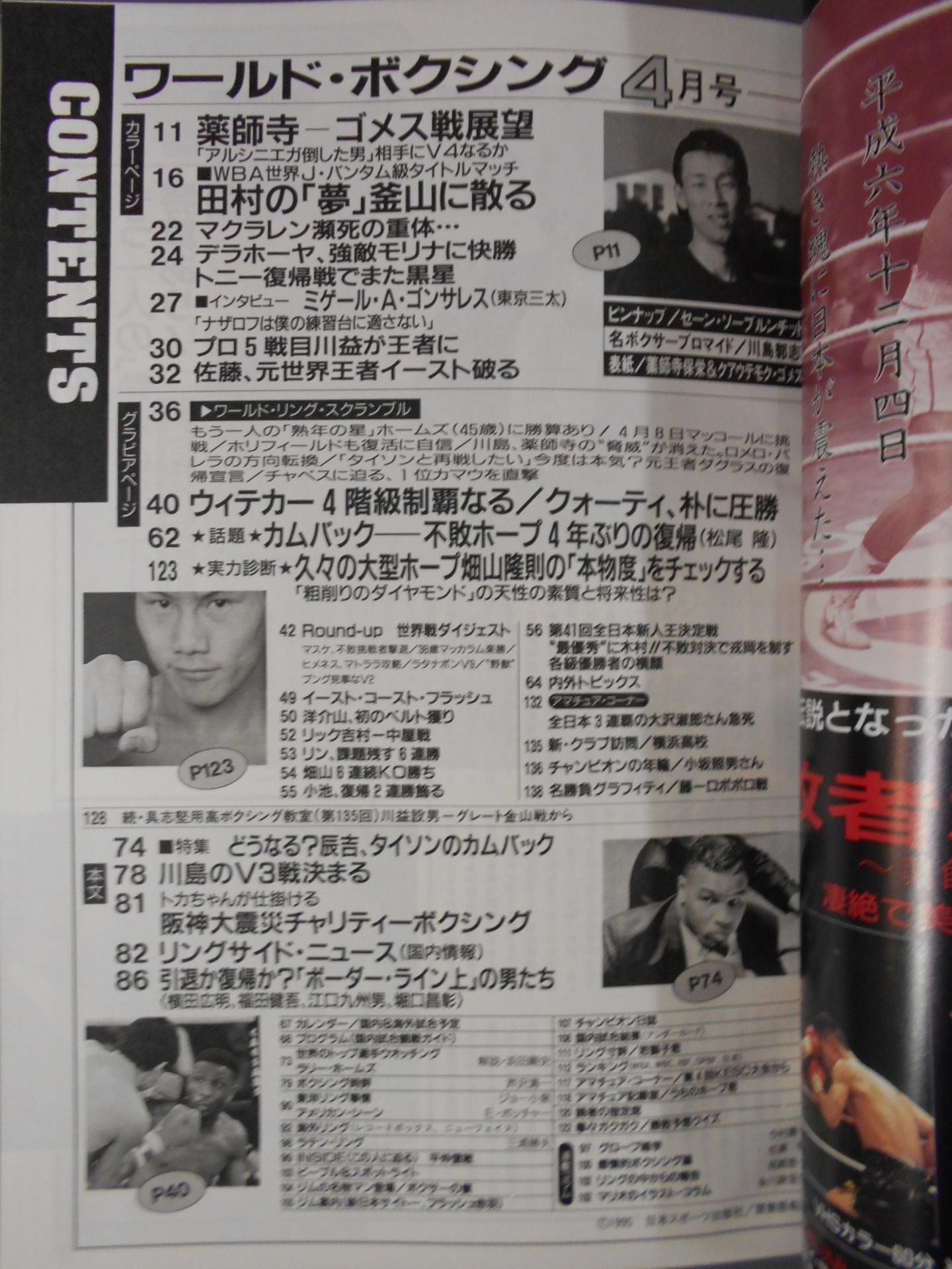 1995年 タイソン&辰吉再起への道 / 【付録】◯白黒ブロマイド(川島郭志) ◯ピンナップ(セーン・ソープルンチット) 表紙:薬師寺保栄