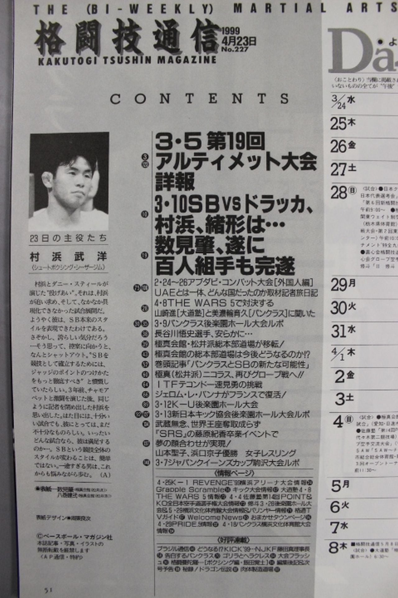 1999年 天才は忍耐である / 4・25K-1リベンジでホーストvsフィリォ / SBvsドラッカ ベストバウト! 3・10後楽園大会 表紙:数見肇vs八巻建志
