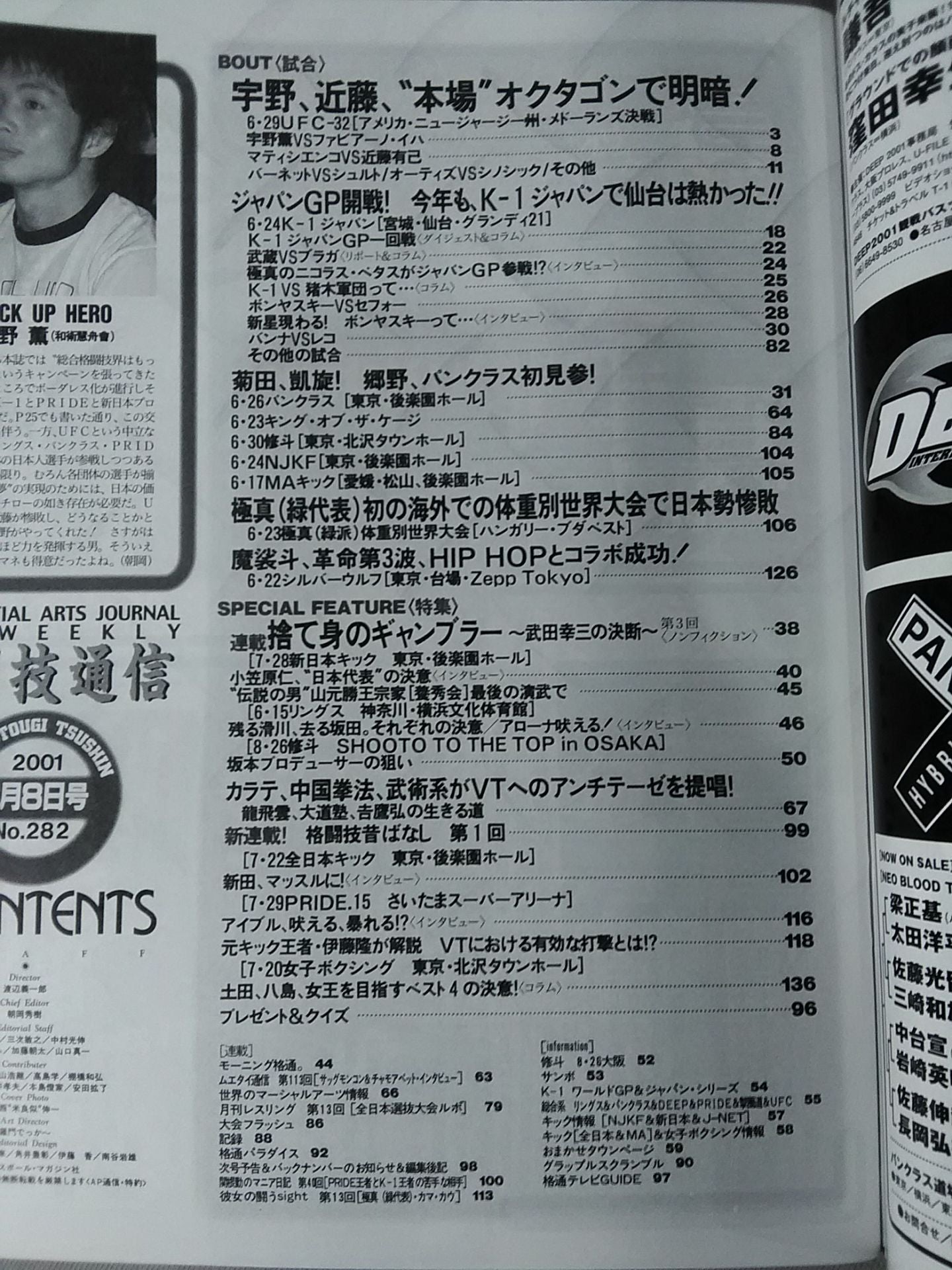 2001年 どうなってるのK-1VS猪木軍 UFC速報。宇野激勝!近藤惜敗!! 表紙:宇野薫