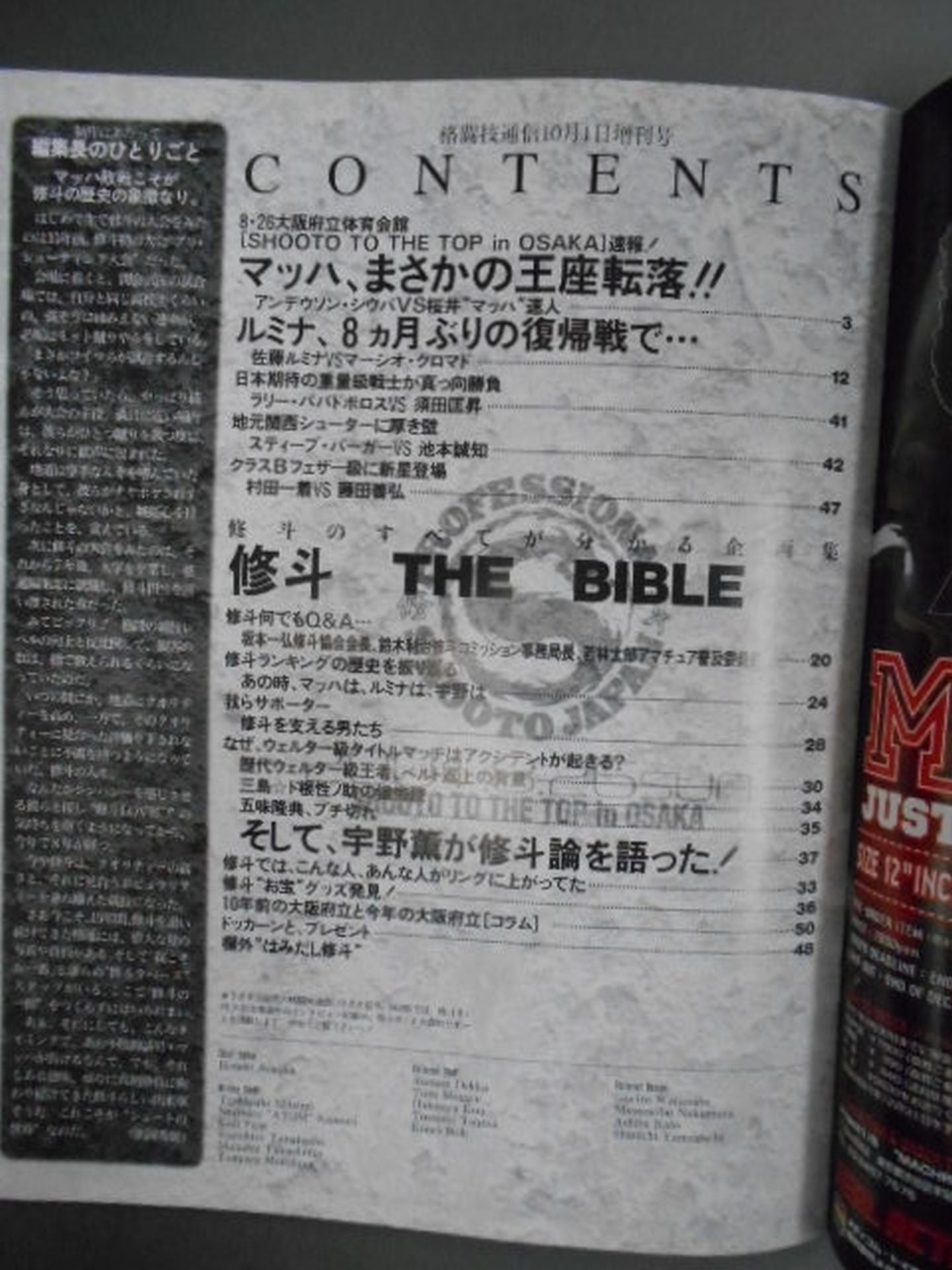2001年 「修斗 THE BIBLE 8.26修斗大阪大会速報号」 桜井“マッハ”速人不敗神話崩壊!! 表紙:桜井”マッハ”速人、アンデウソン・シウバ