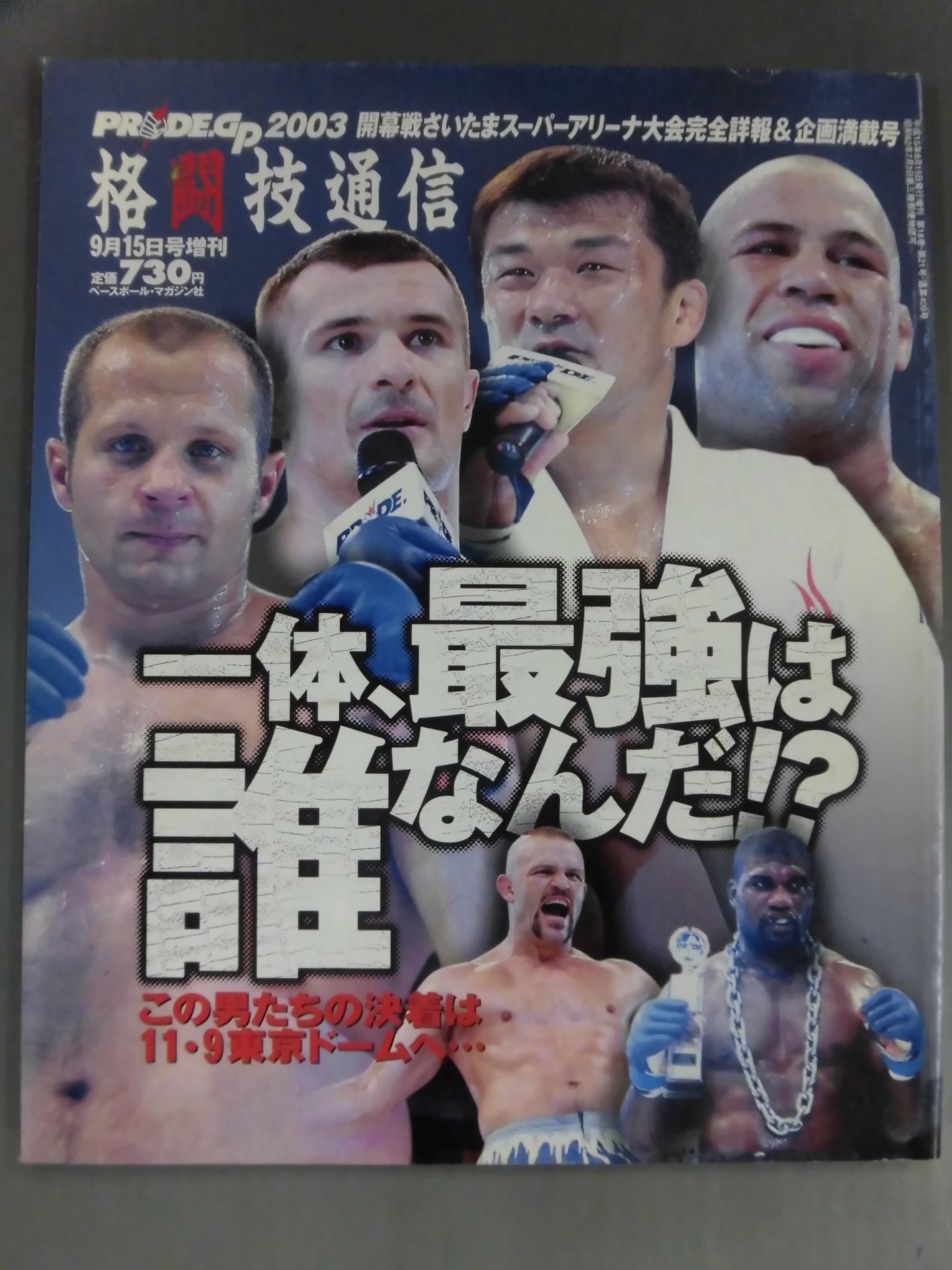「PRIDE GP2003 開幕戦さいたまスーパーアリーナ大会完全詳報&企画満載号」 一体、最強は誰なんだ? 表紙:ヒョードル、ミルコ、吉田、シウバ