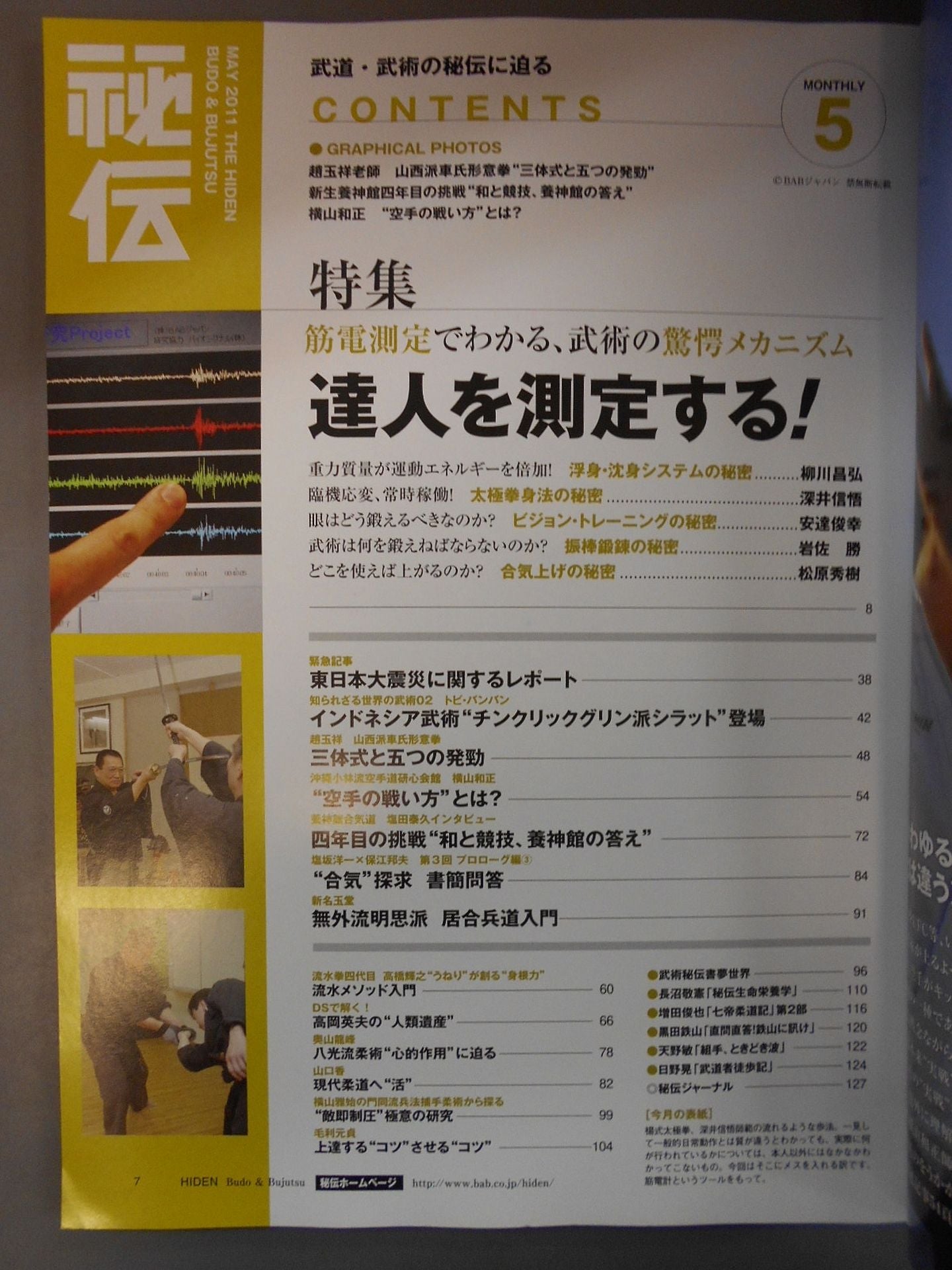 2011年 特集:達人を測定する! 筋電測定でわかる、武術の驚愕メカニズム
