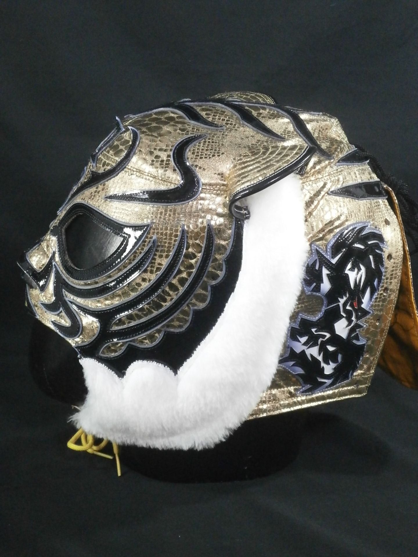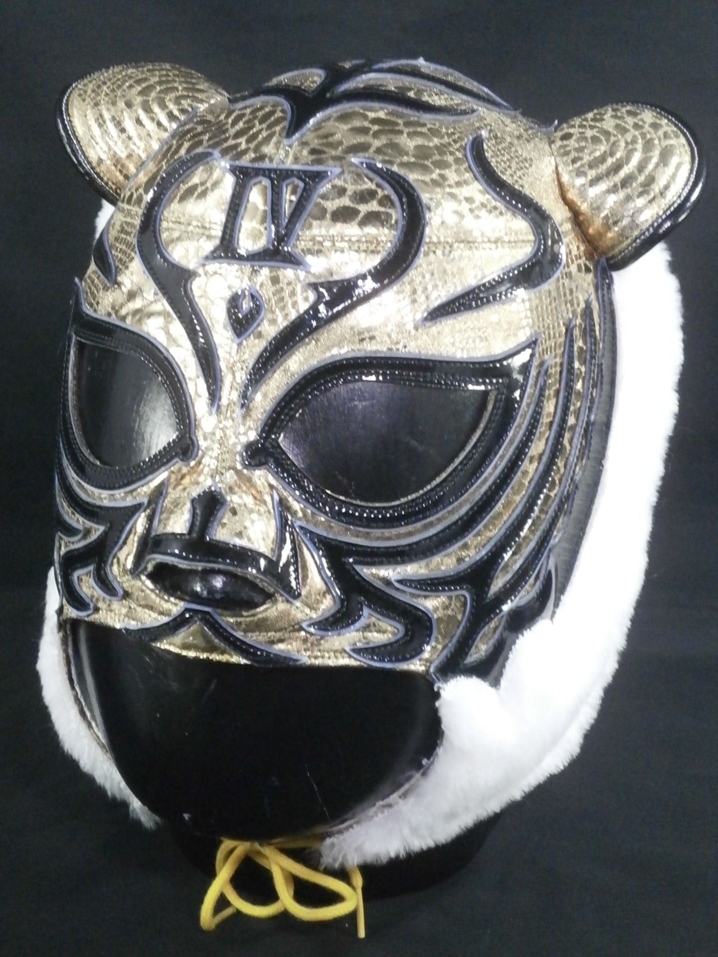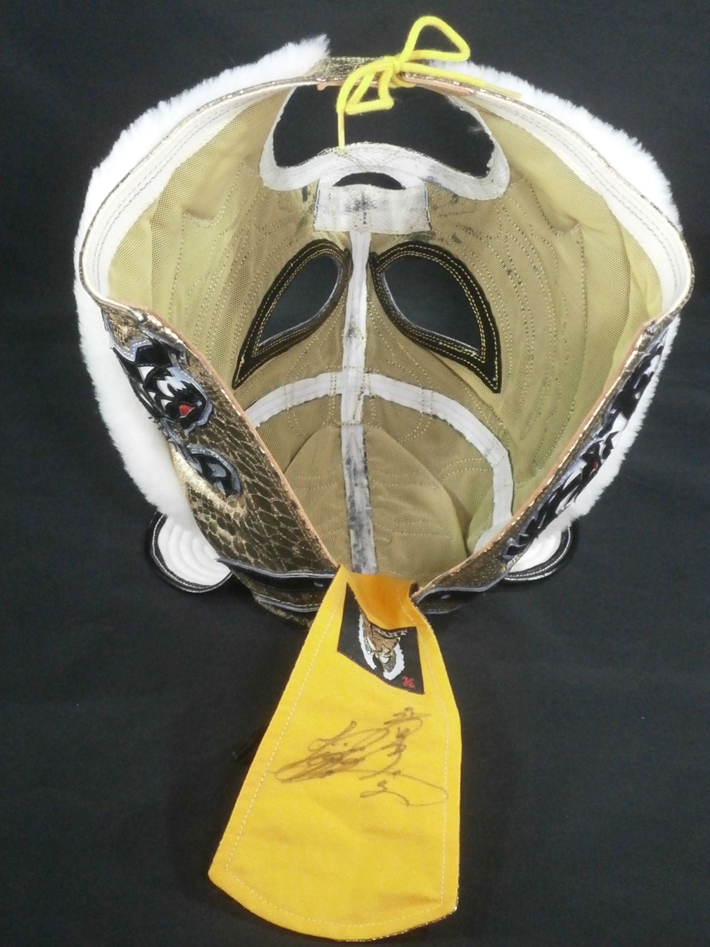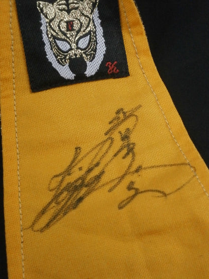 ★レッスルキングダム7・横一文字タイプ★サイン入 金特殊シルク2重生地(メッシュ張り) 銀地黒フチ