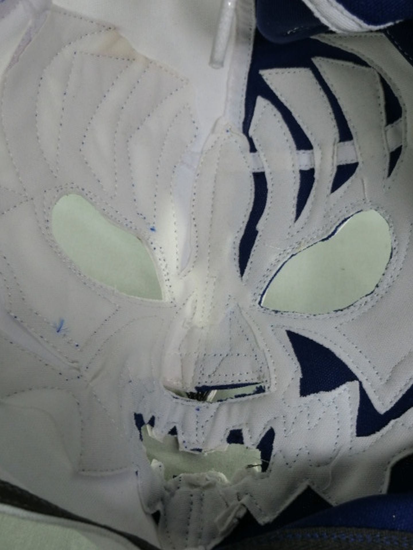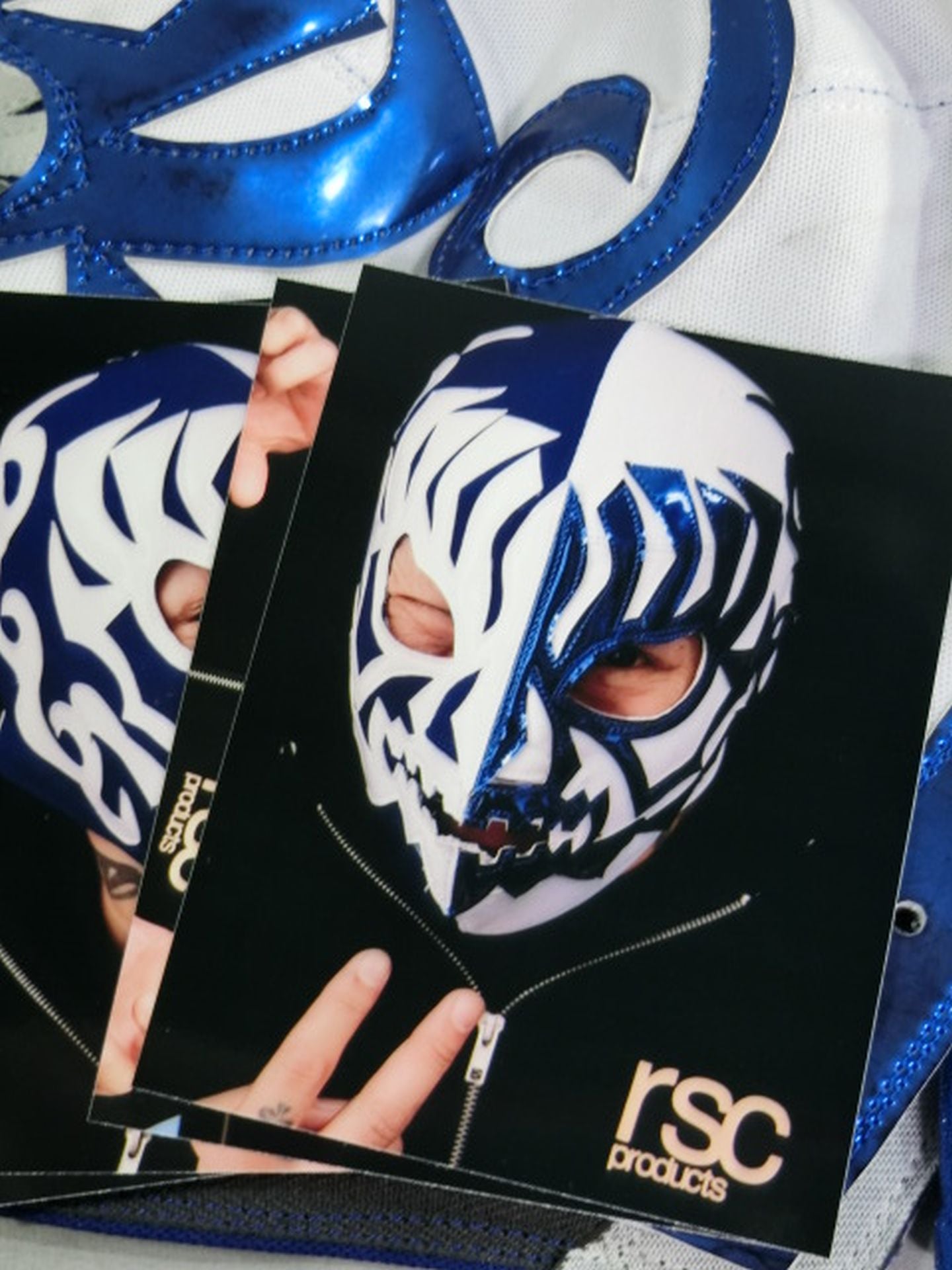 サイン入り 着用写真付 青&白ハーフジャージ生地 白フチ&青フチ
