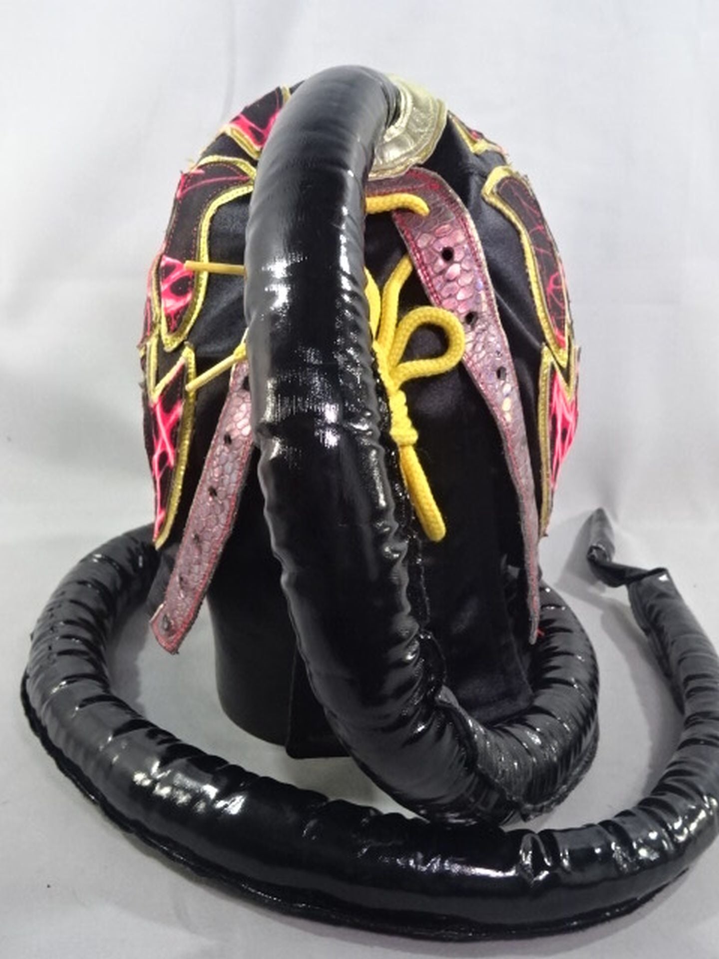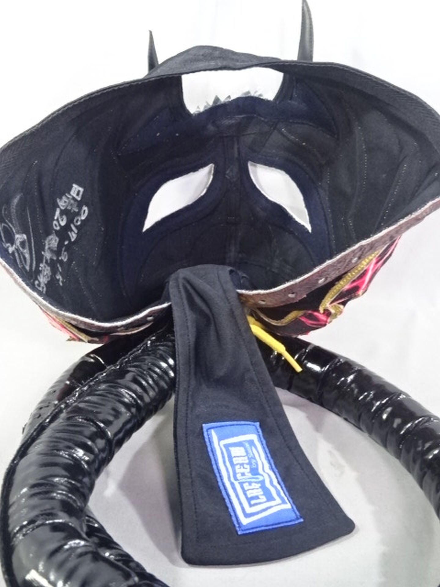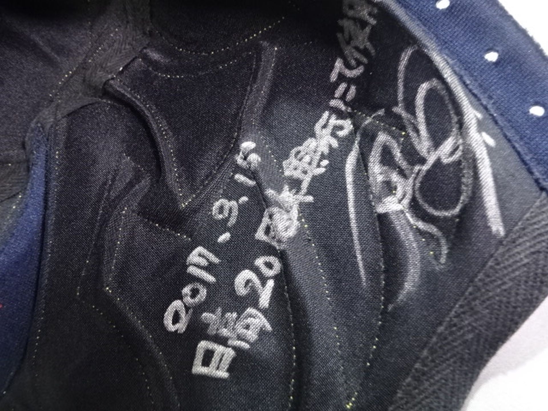 2017年 本人使用サイン入り 黒サテン生地 金地紫特殊フチ&金地赤黒模様フチ パール特殊牙 2017年3月15日「日高祭20 日高郁人デビュー20周年記念興行」で使用したもの