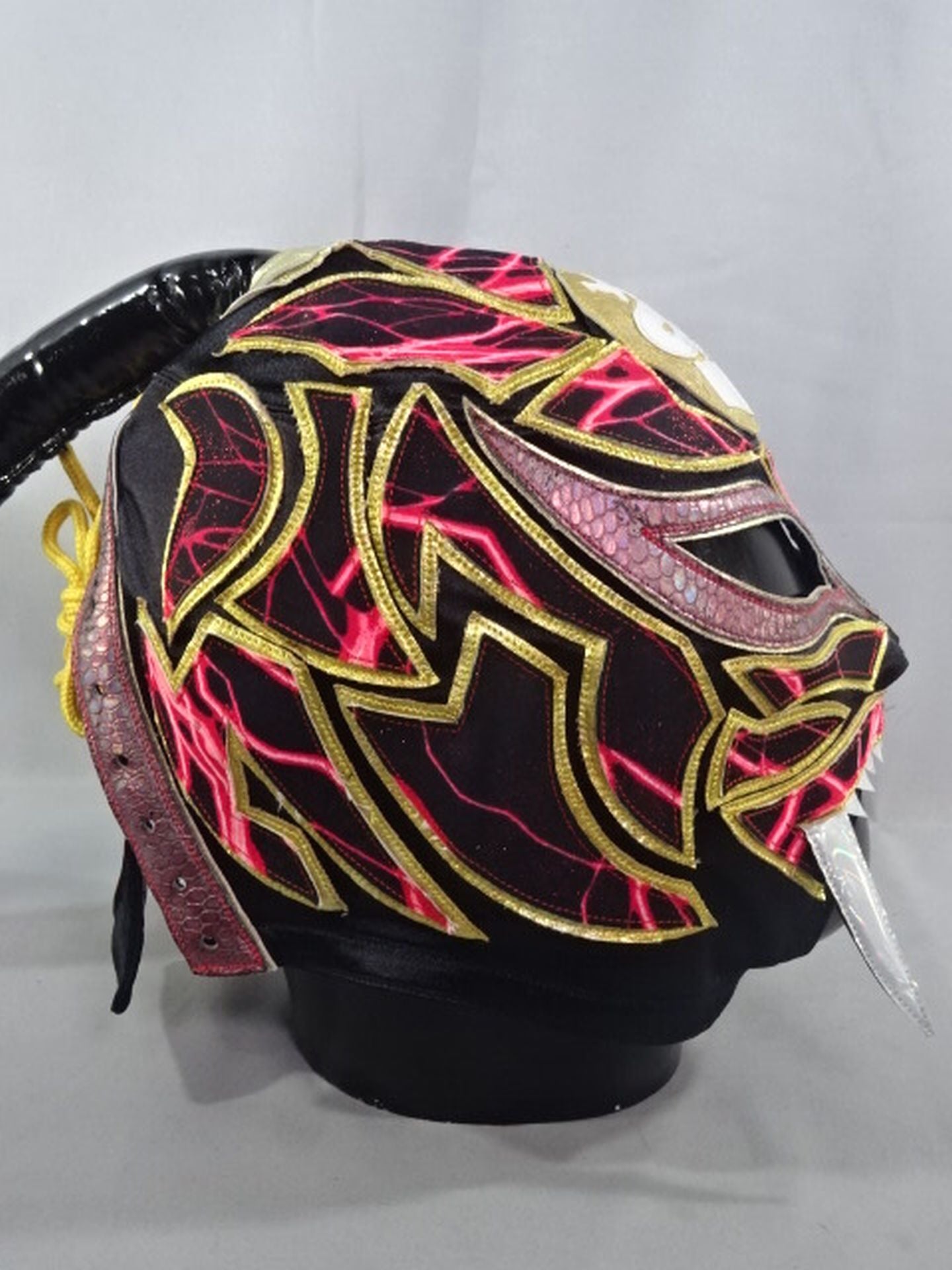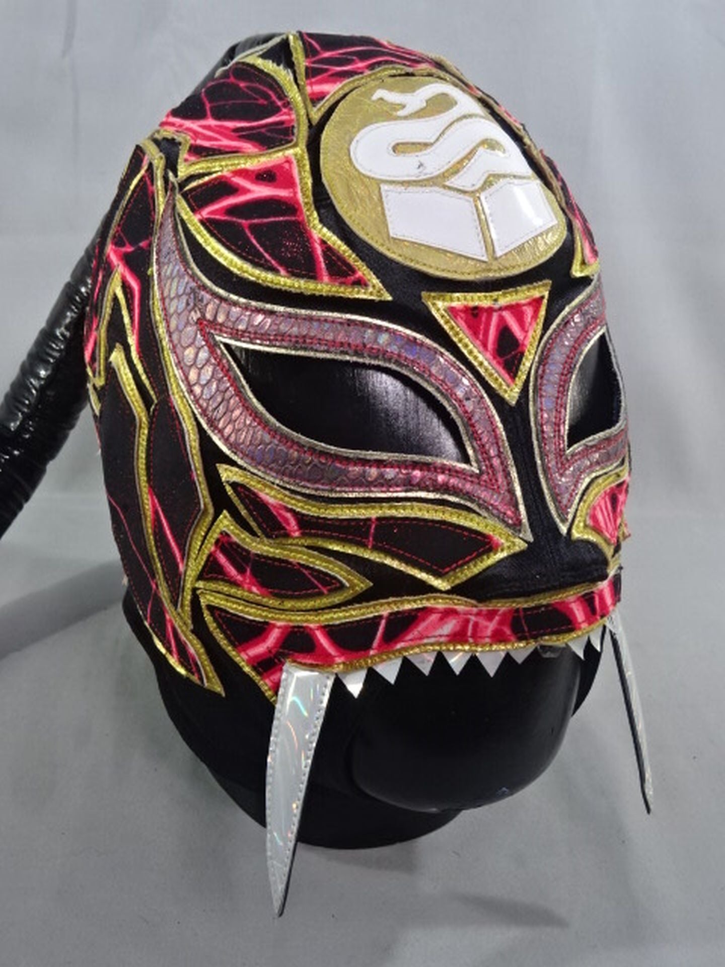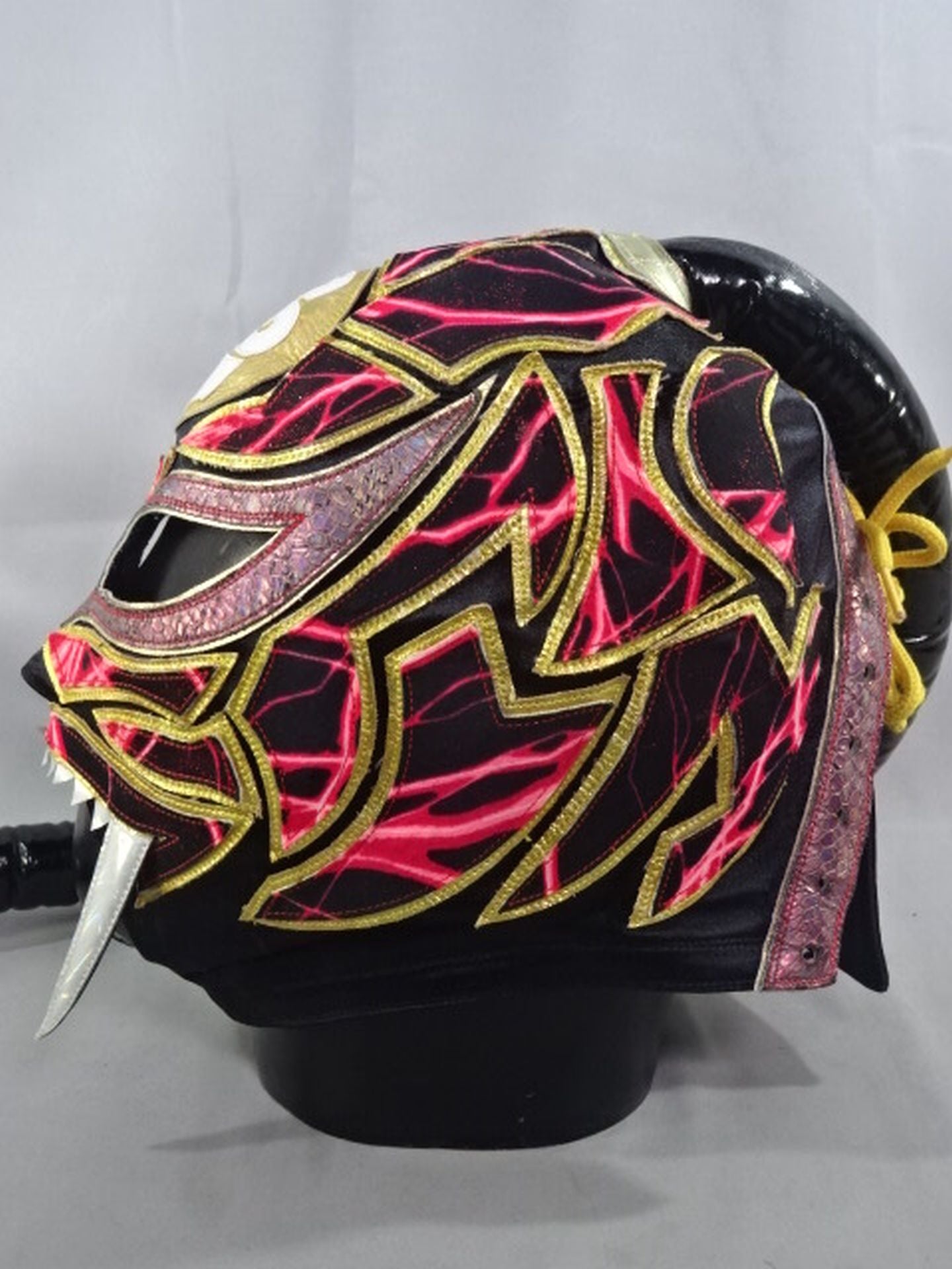2017年 本人使用サイン入り 黒サテン生地 金地紫特殊フチ&金地赤黒模様フチ パール特殊牙 2017年3月15日「日高祭20 日高郁人デビュー20周年記念興行」で使用したもの