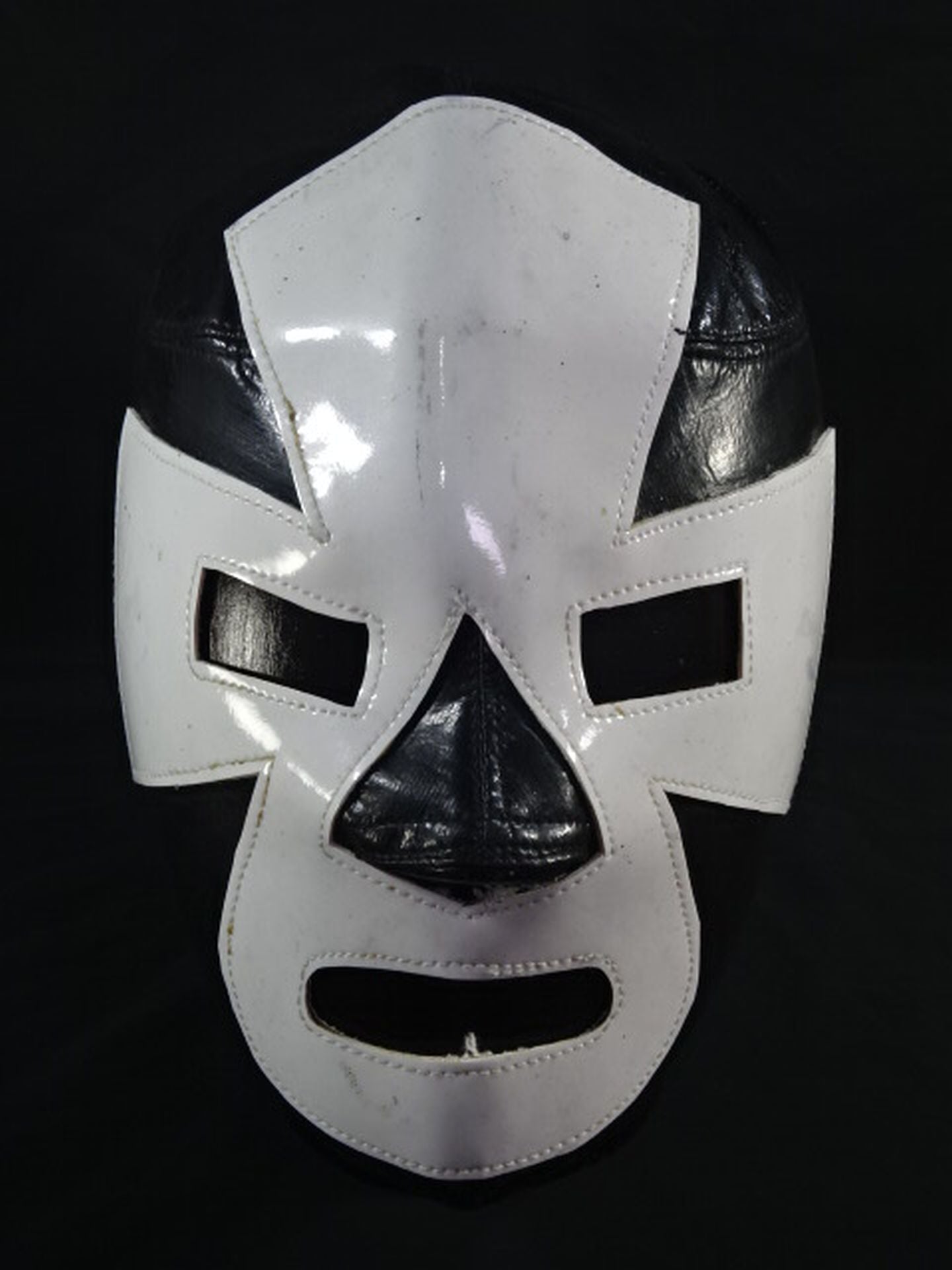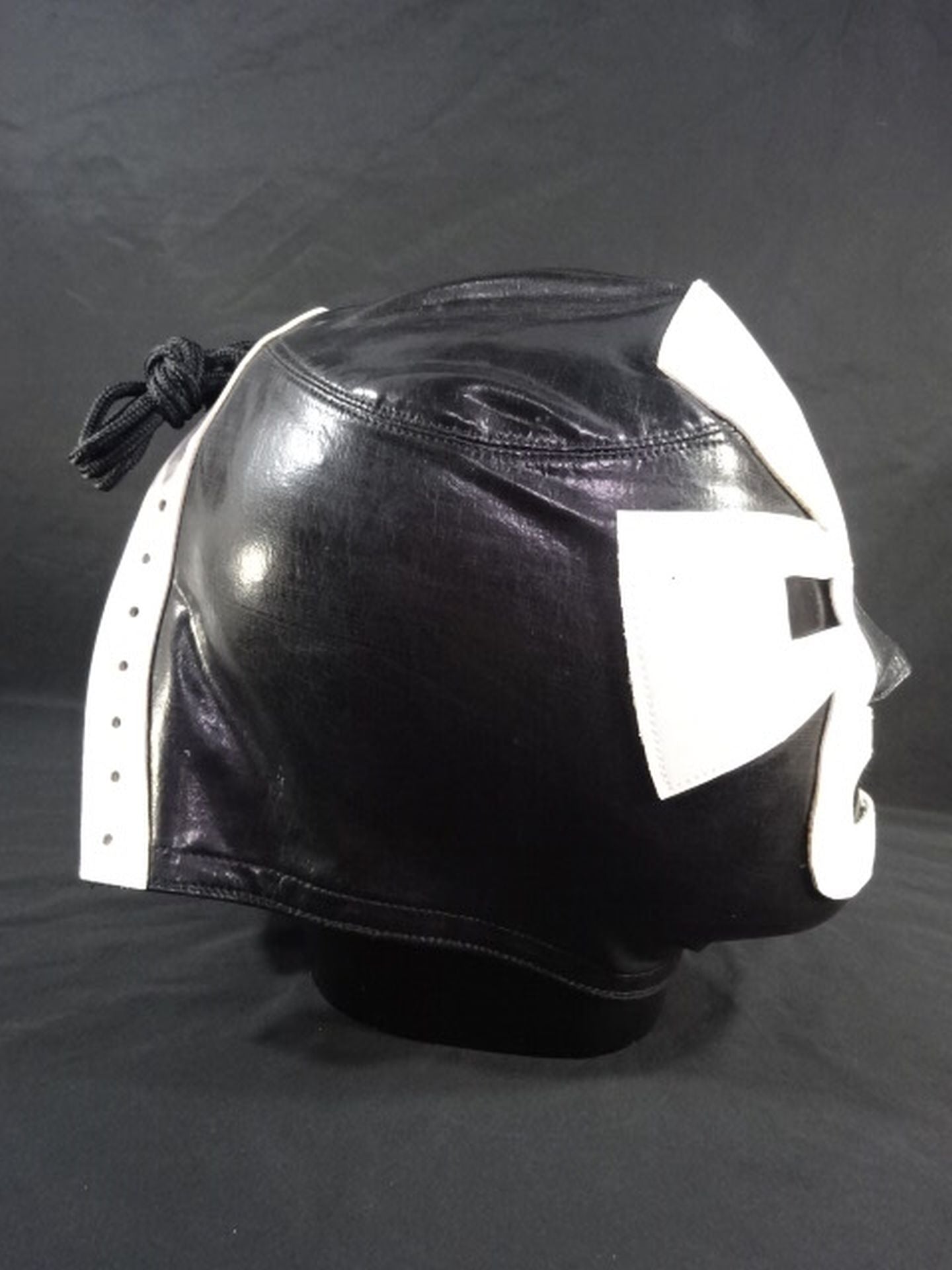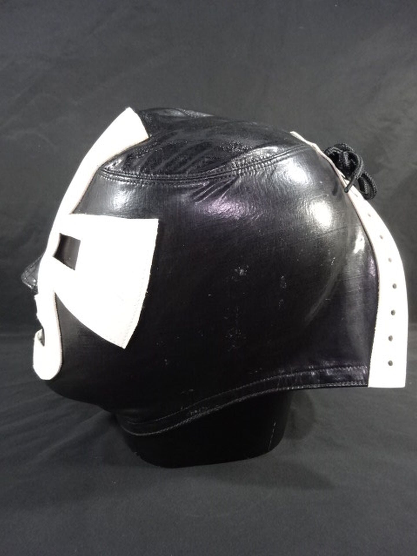 ★ビンテージ年代物マスク★ サイン入り 黒ボンデージ生地 白フチ