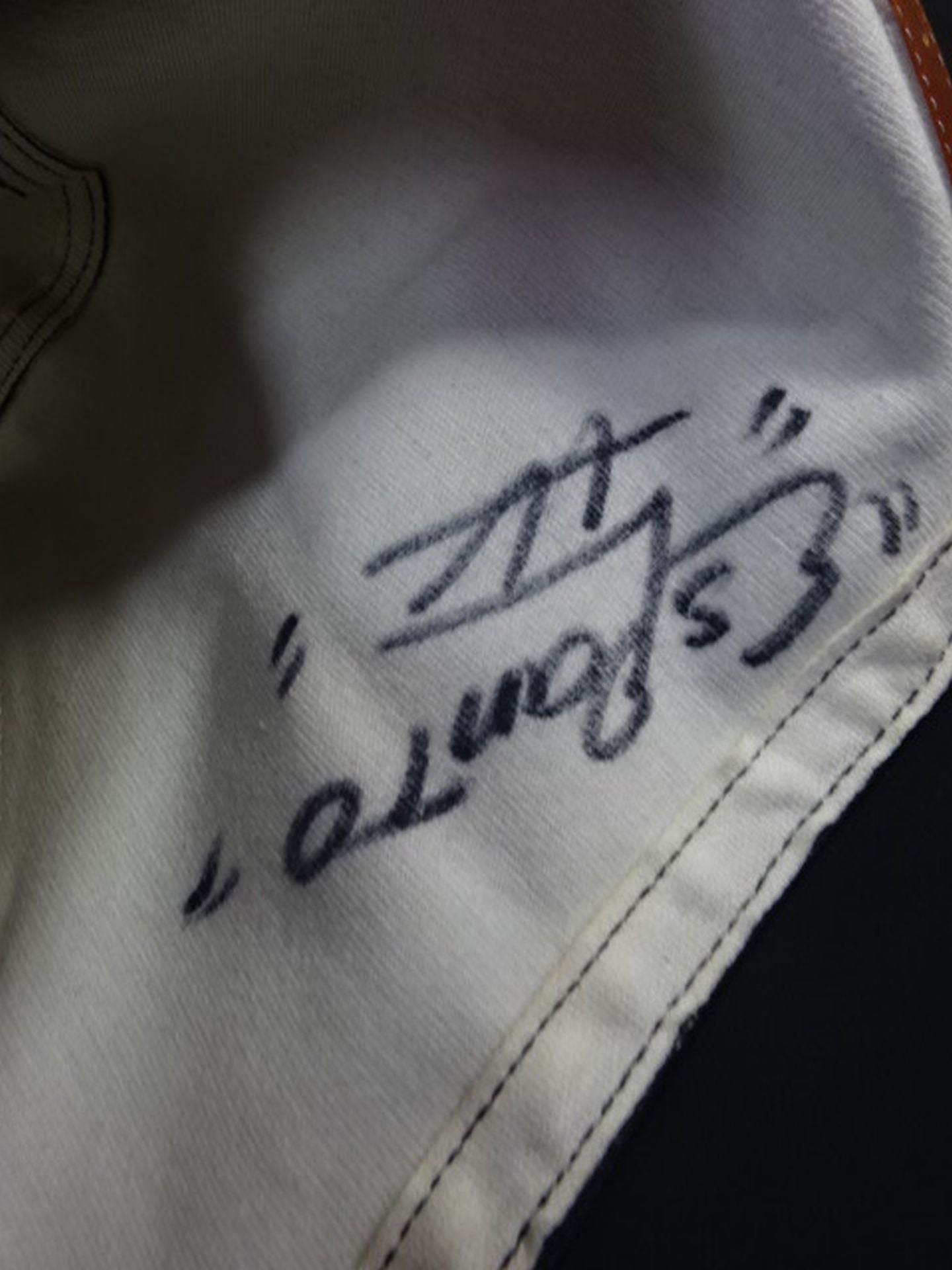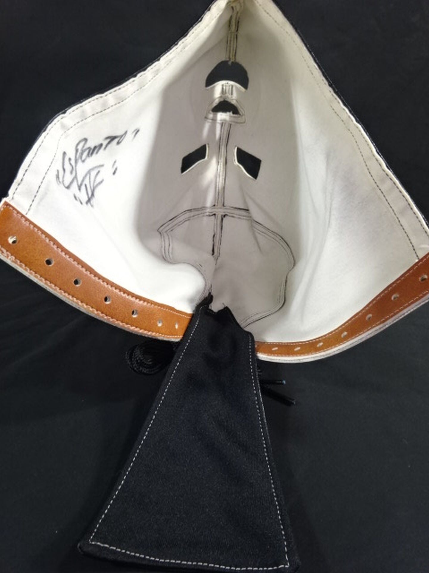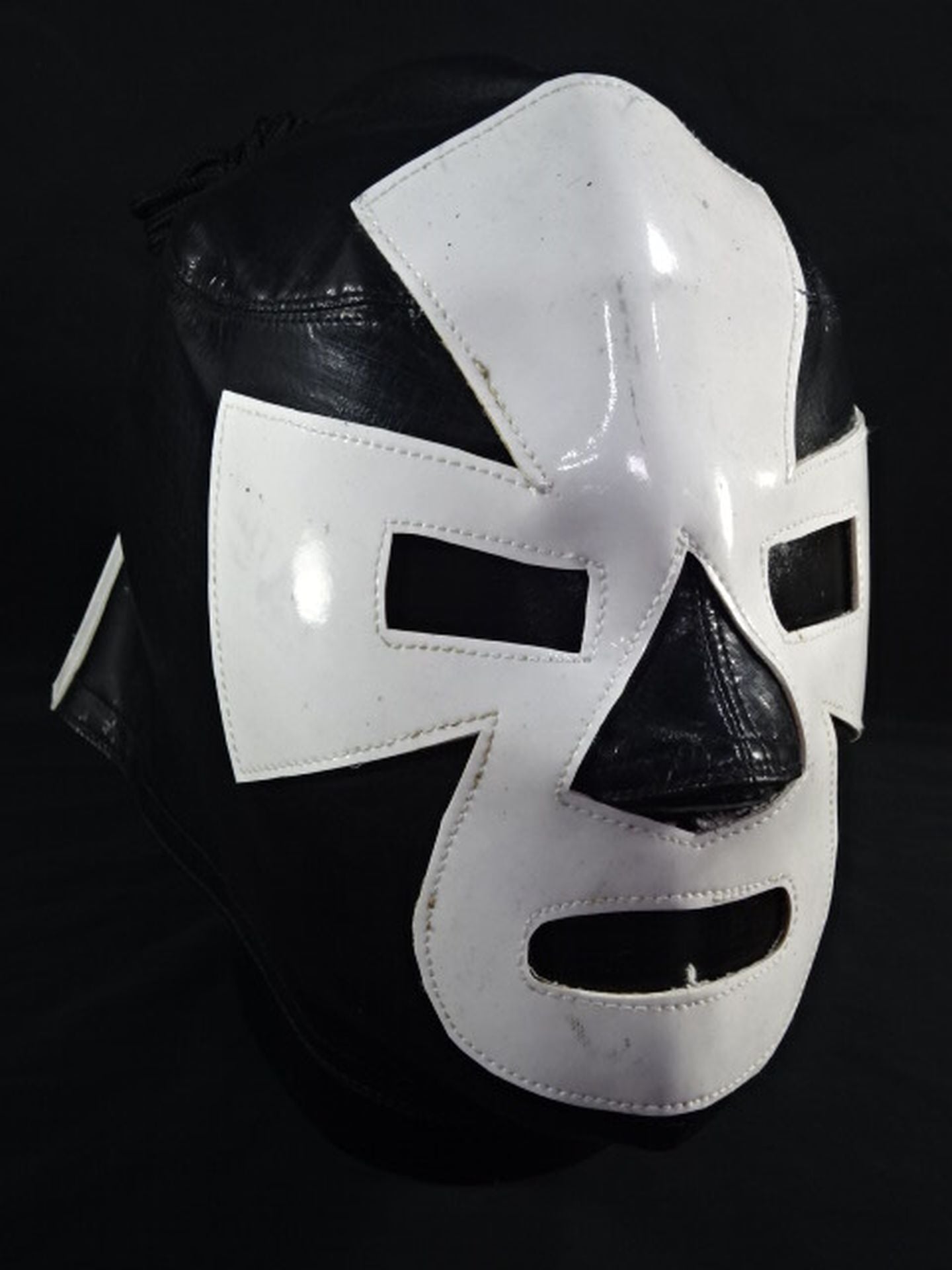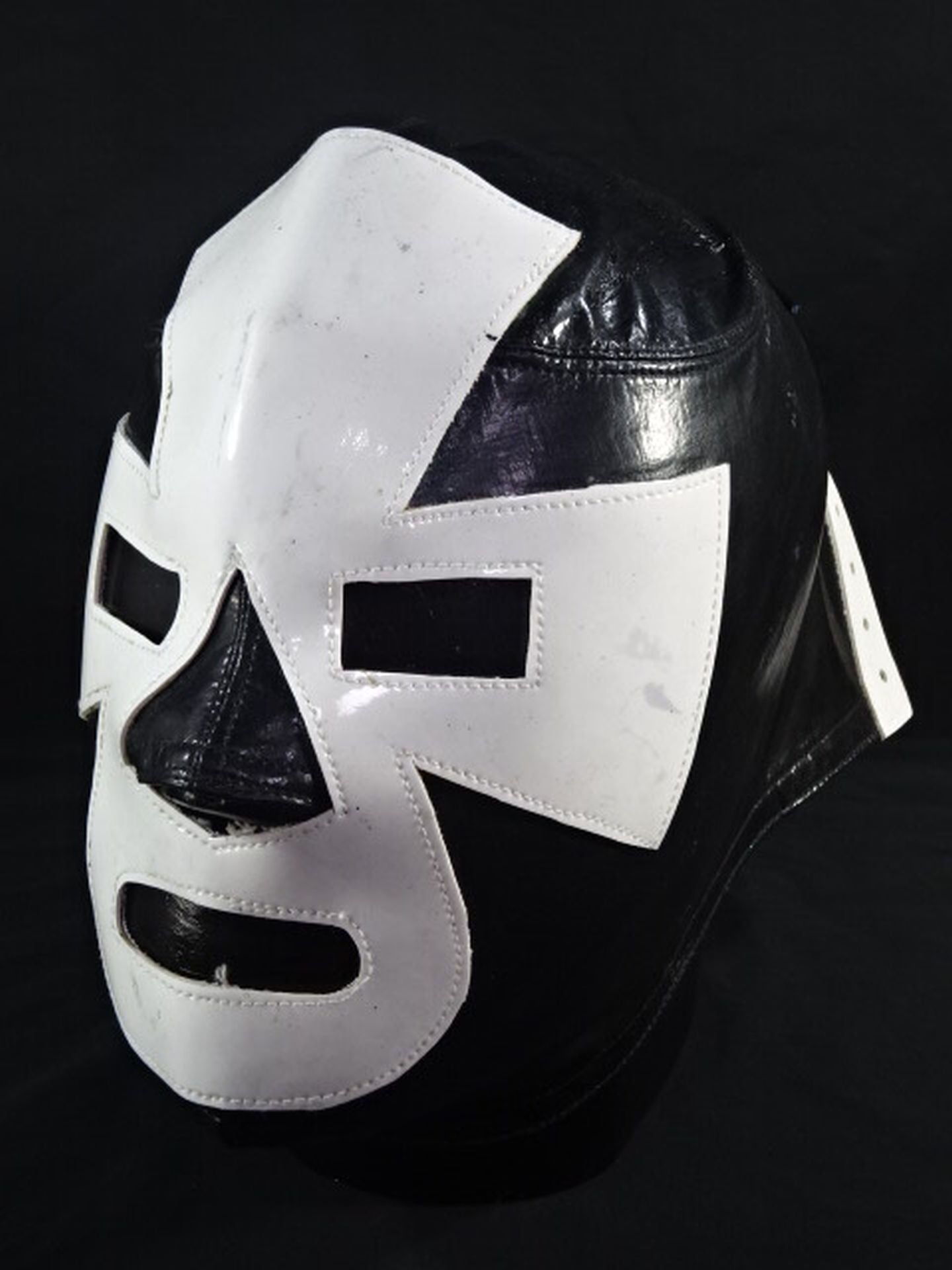 ★ビンテージ年代物マスク★ サイン入り 黒ボンデージ生地 白フチ