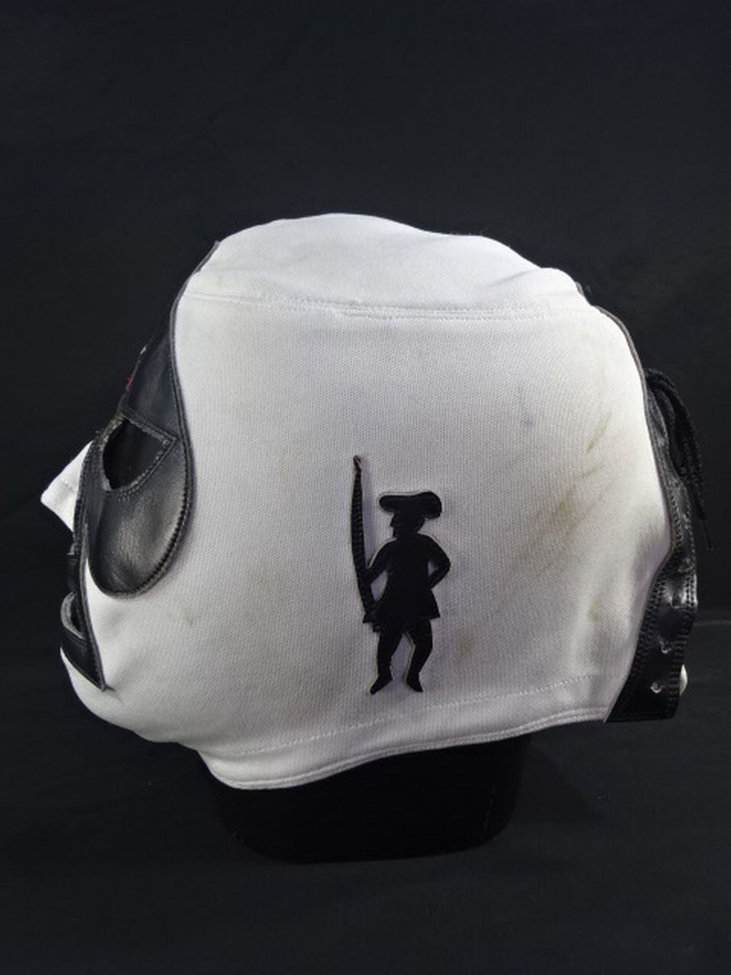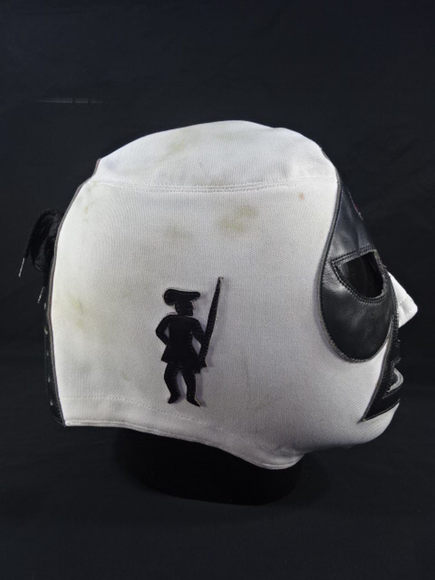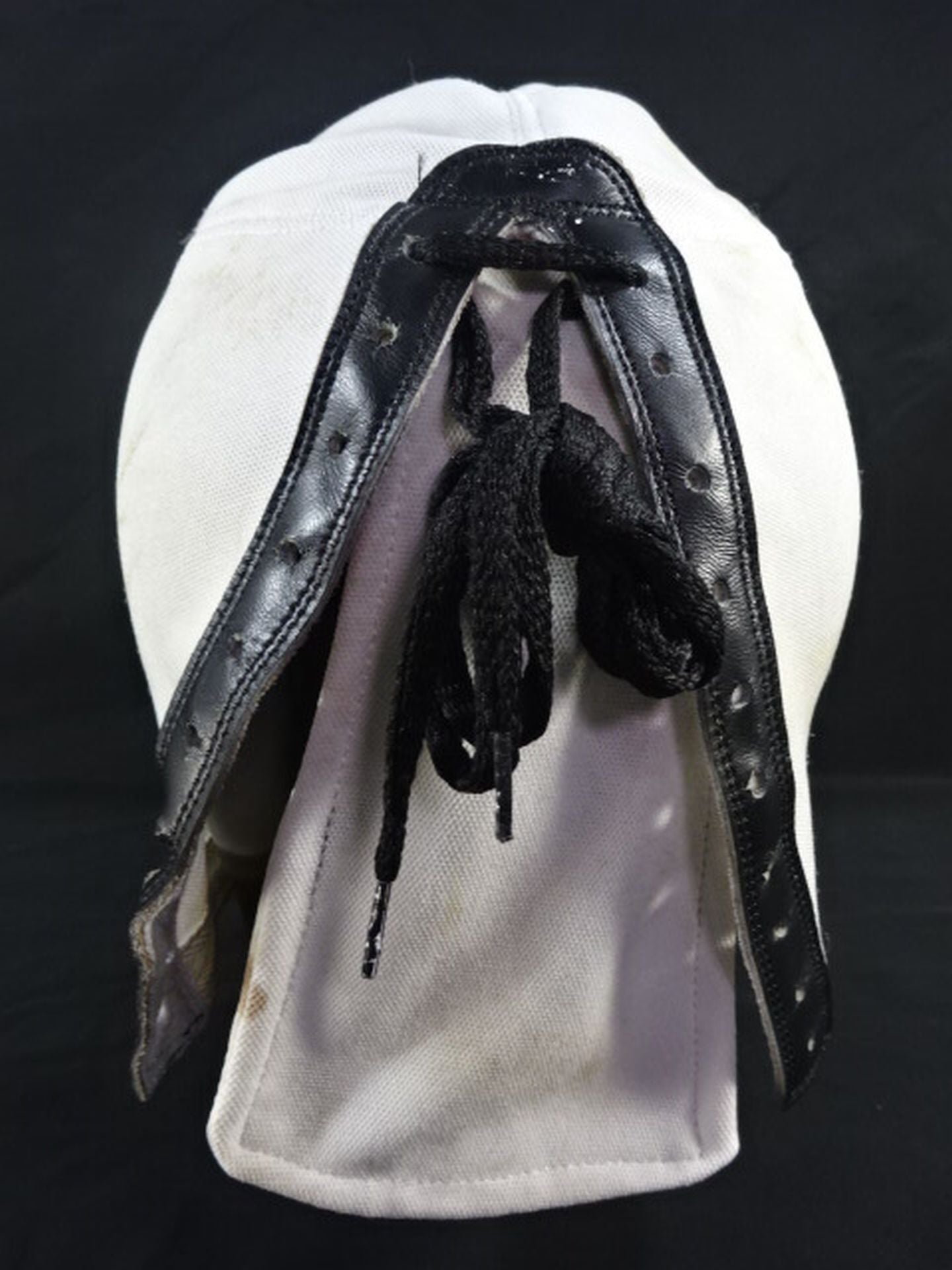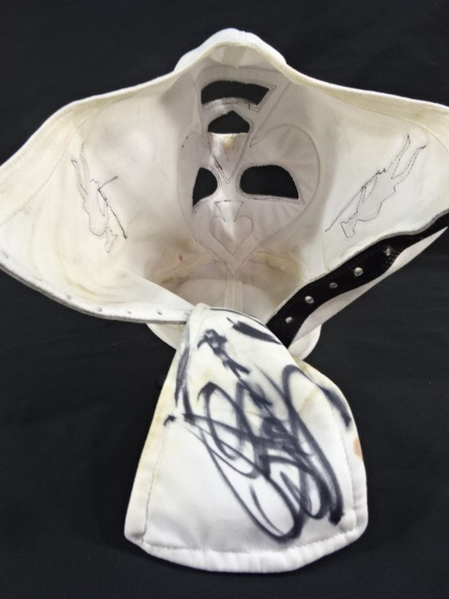★ビンテージ年代物マスク★ 本人長期使用サイン入り 白ジャージ生地 黒革フチ(赤ラメ)