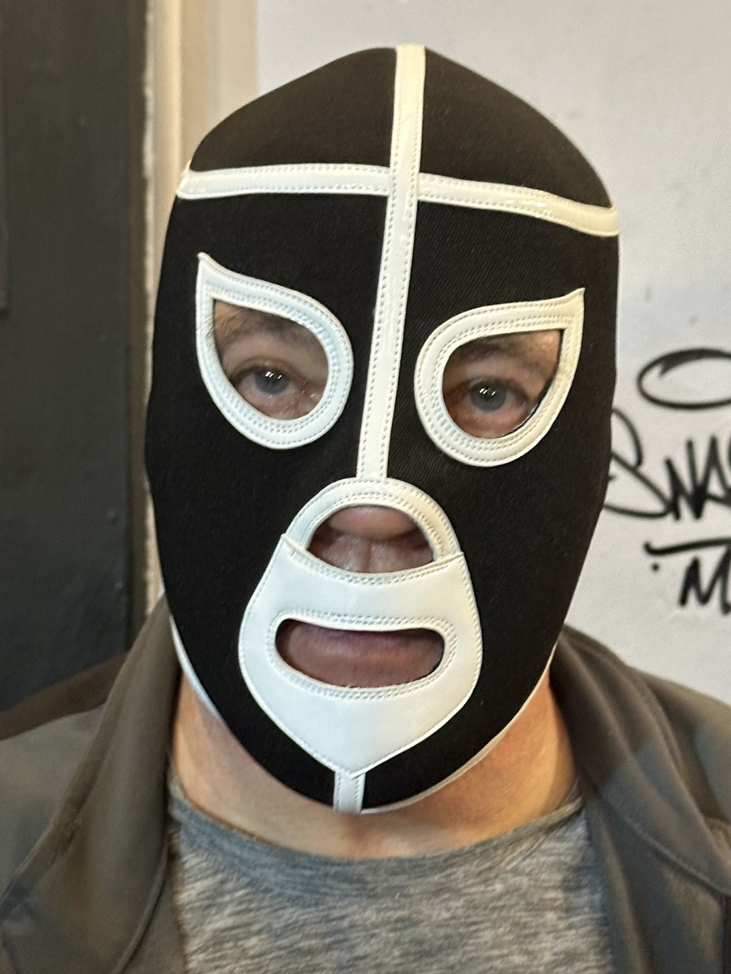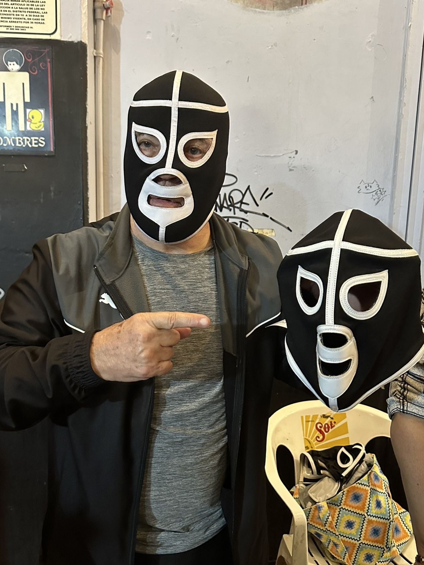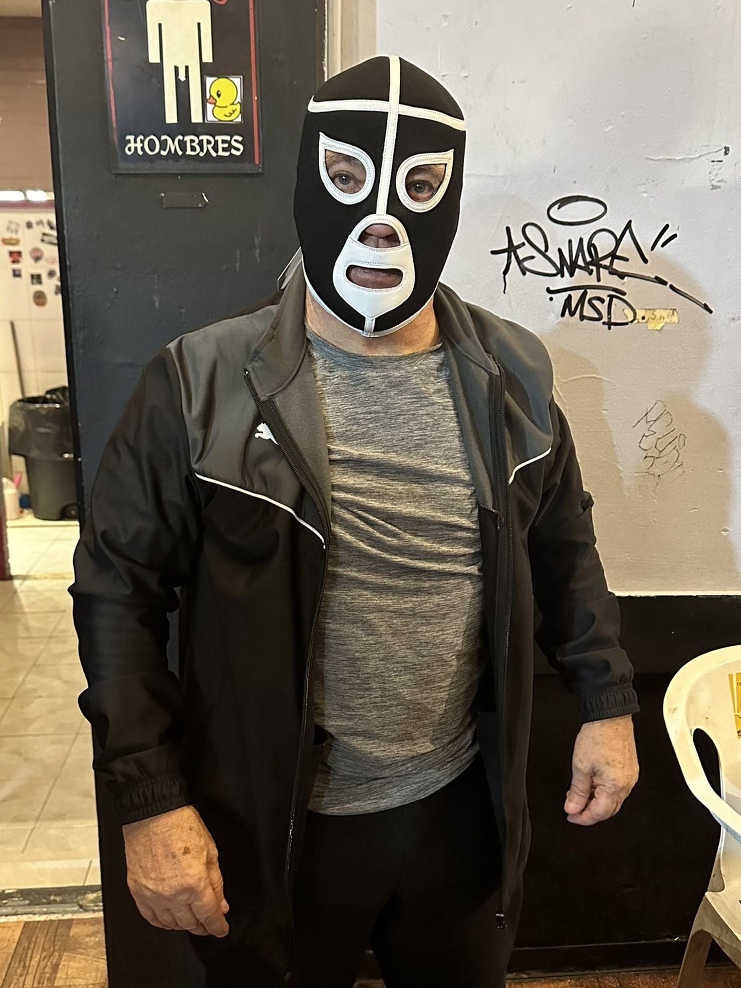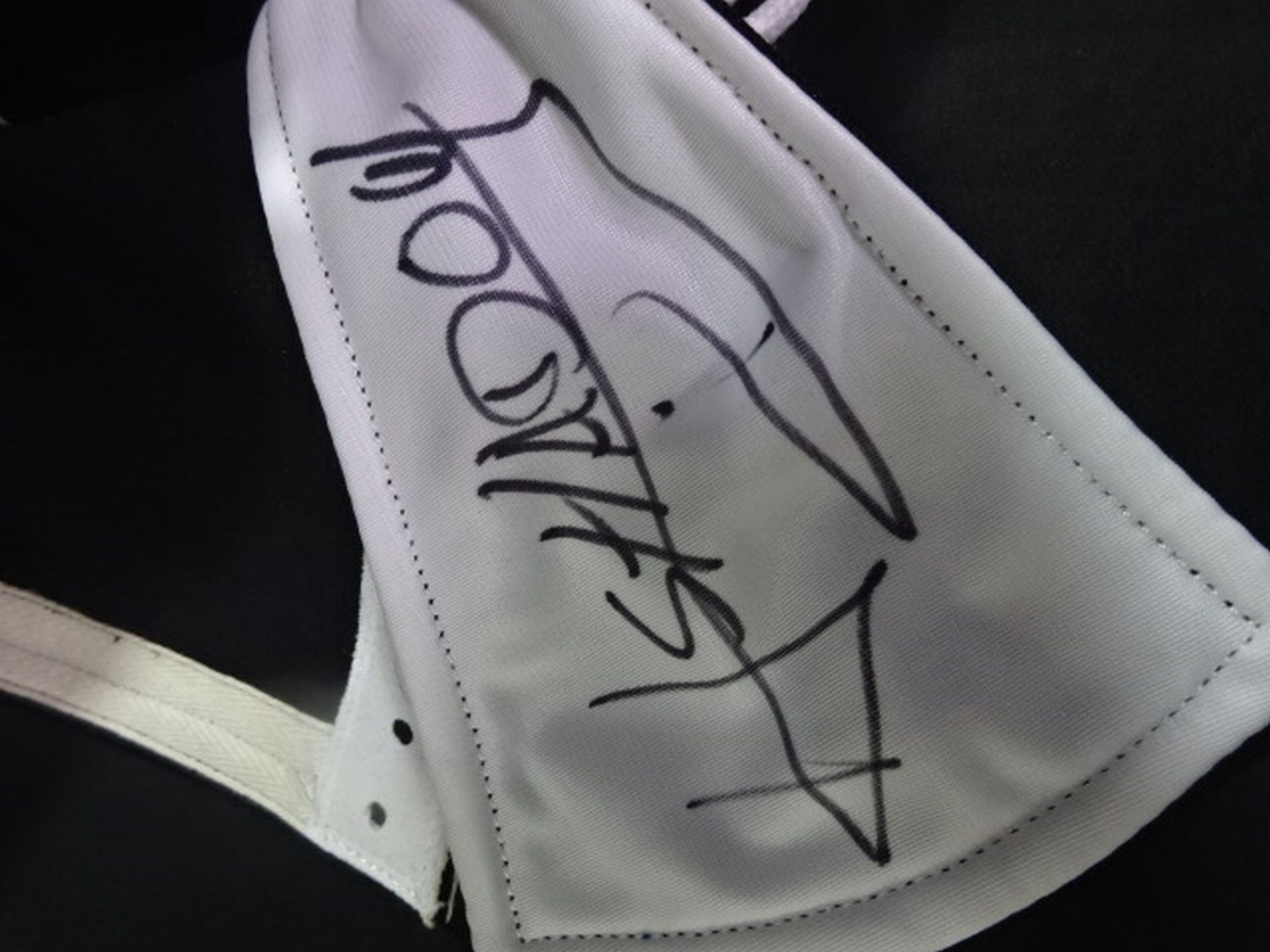 2024年 2024年9月14日、シルコ・ボラドール(メキシコシティ)で行われた「UWA LUCHA FANFEST」で本人が販売していたもの サイン入り 着用写真付 黒ジャージ生地 白フチ 当館スタッフが会場にて数ある中から厳選した1枚!!