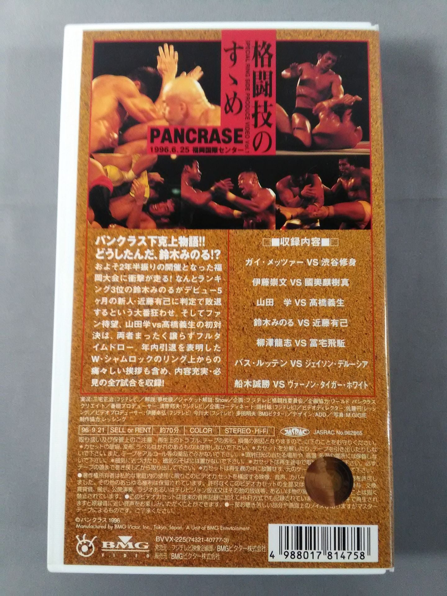 1996年 パンクラス下克上物語!! どうしたんだ、鈴木みのる!?およそ2年半振りの開催となった福岡大会に衝撃が走る!なんとランキ ング3位の鈴木みのるがデビュー5ヶ月の新人・近藤有己に判定で敗退するという大番狂わせ。そしてファン待望、山田学vs高橋義生の初対決は、両者まったく譲らずフルタイムドロー。年内引退を表明した W・シャムロックのリング上からの痛々しい挨拶も含め、内容充実・必見の全7試合を収録!鈴木みのるvs近藤有己、船木誠勝vsヴァーノン・タイガー・ホワイト 他全7試合収録!!