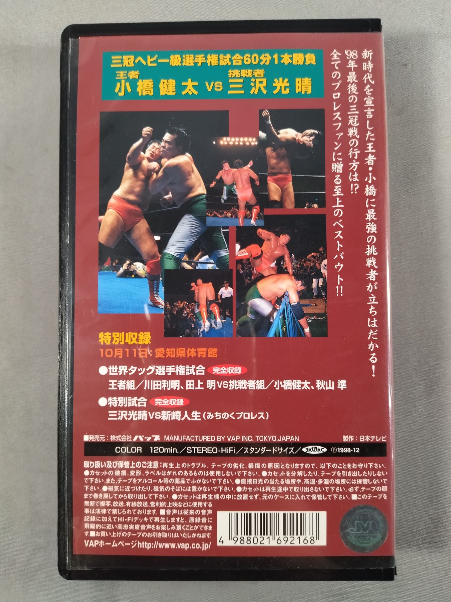 1998年 ○小橋vs三沢(三冠戦)、10.11愛知県体育館 川田・田上vs小橋・秋山、三沢vs新崎人生 両試合完全ノーカット収録!! ○新時代を宣言した王者・小橋に最強の挑戦者が立ちはだかる!98年最後の三冠戦の行方は!?全てのプロレスファンに贈る至上のベストバウト!!