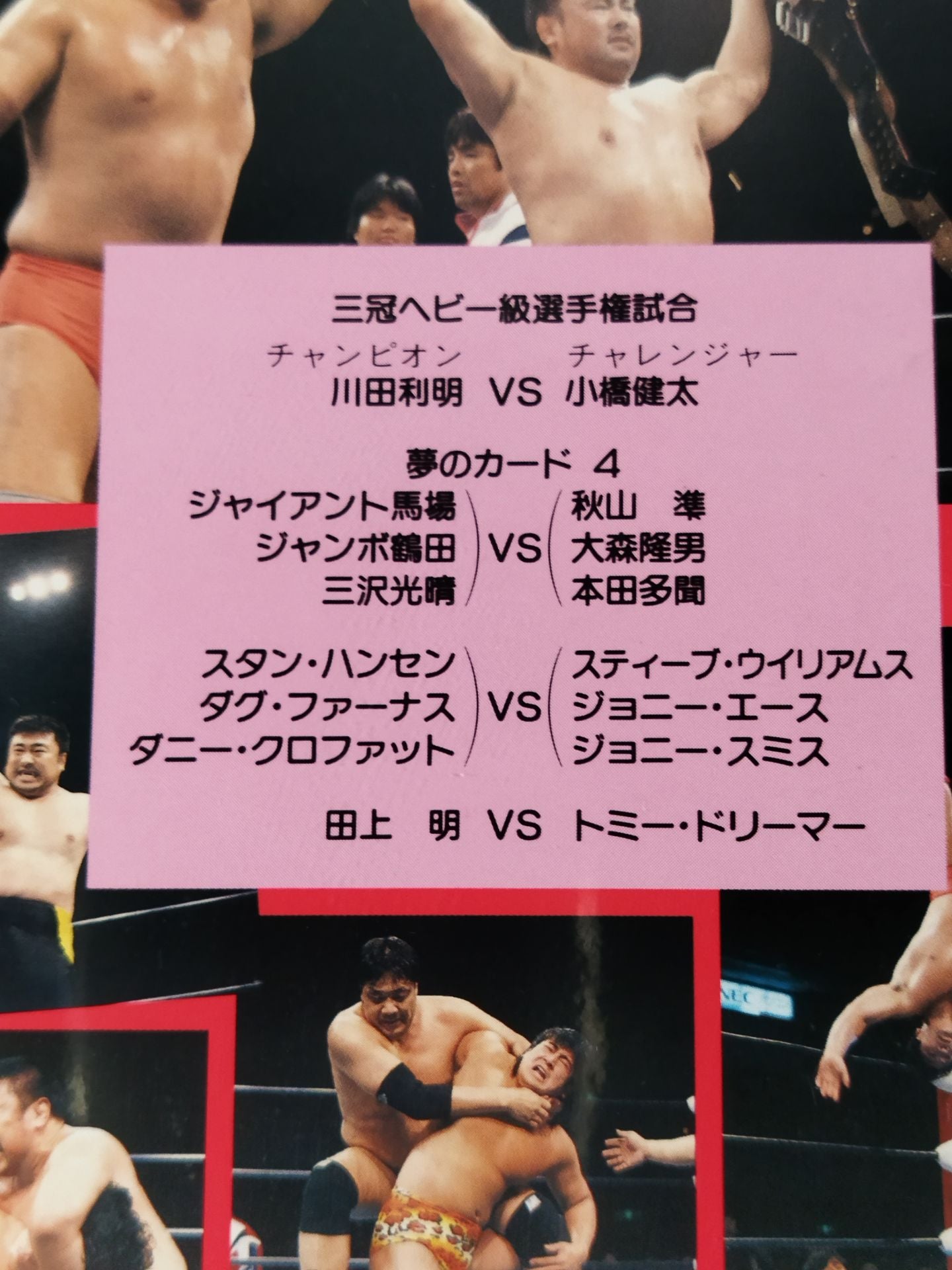 川田vs小橋 他 制作:ジャイアントサービス ○届け!この思い!!60分フルタイム戦い抜いた三冠ヘビー級選手権試合は、プロレス史上に残る一戦となった。ノーカット完全収録!!全4試合収録!!