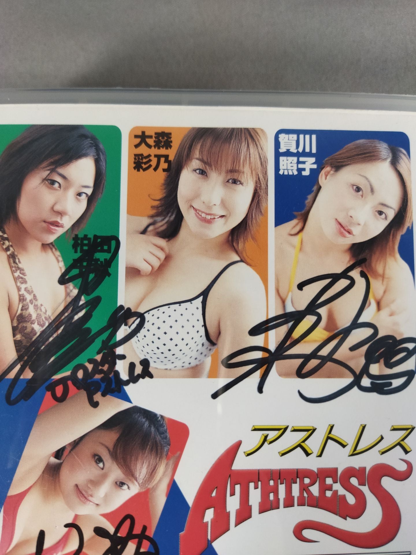 2002年 ★賀川照子、柏田千秋、吉田圭子、桜花由美 計4選手の直筆サイン入り!!★ 吉本女子プロレス「アストレス」がコスチュームを脱いで水着になった!