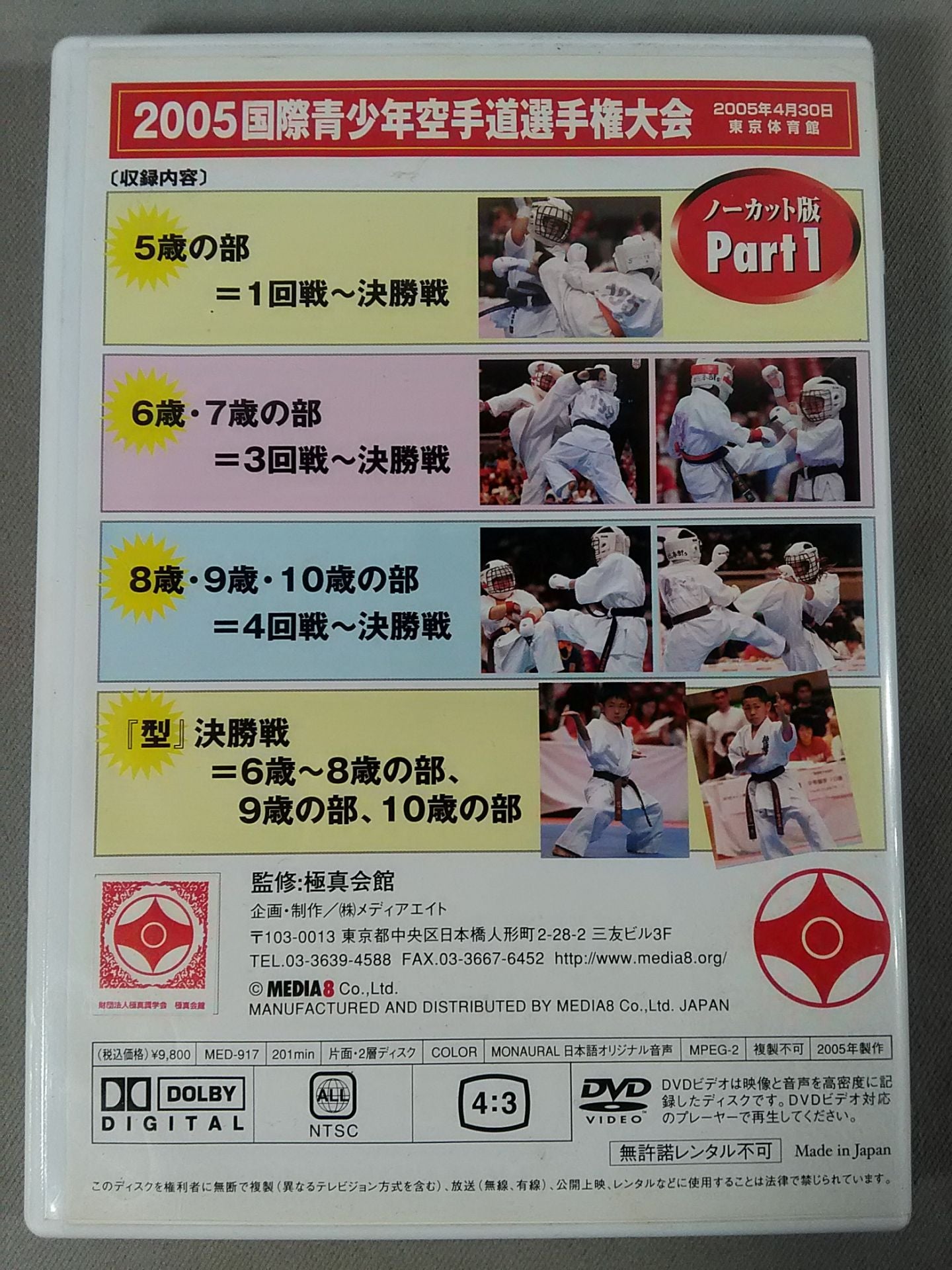 2005年 [収録内容]:5歳の部=1回戦~決勝戦 / 6・7歳の部=3回戦~決勝戦 / 8・9・10歳の部=4回戦~決勝戦 / 「型」決勝戦=6歳~8歳の部、9歳の部、10歳の部 監修:極真会館