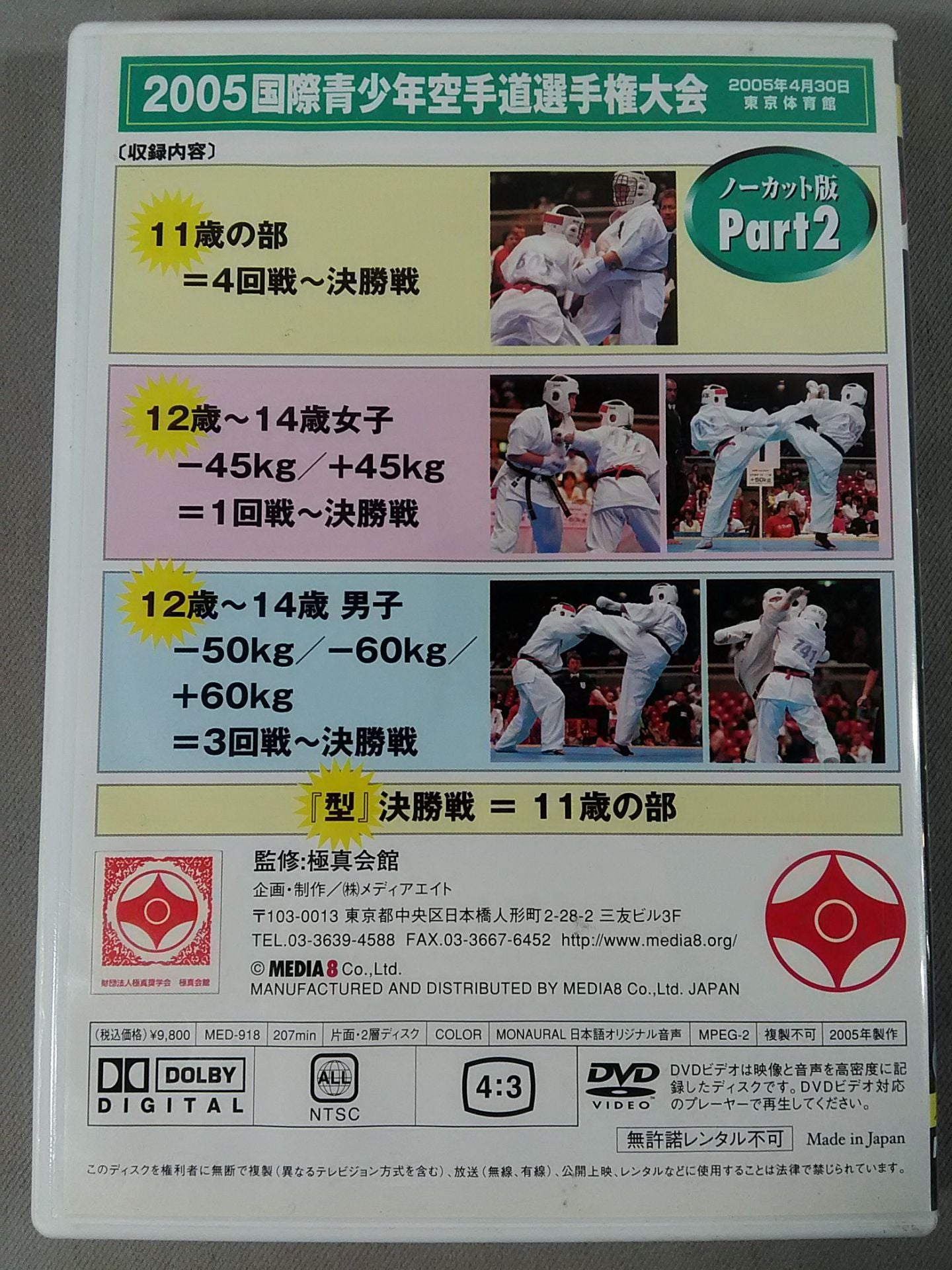 2005年 [収録内容]:11歳の部=4回戦~決勝戦 / 12歳~14歳 女子 -45Kg/+45Kg=1回戦~決勝戦 / 12歳~14歳 男子 -50Kg/-60Kg/+60Kg=3回戦~決勝戦 / 「型」決勝戦=11歳の部 監修:極真会館