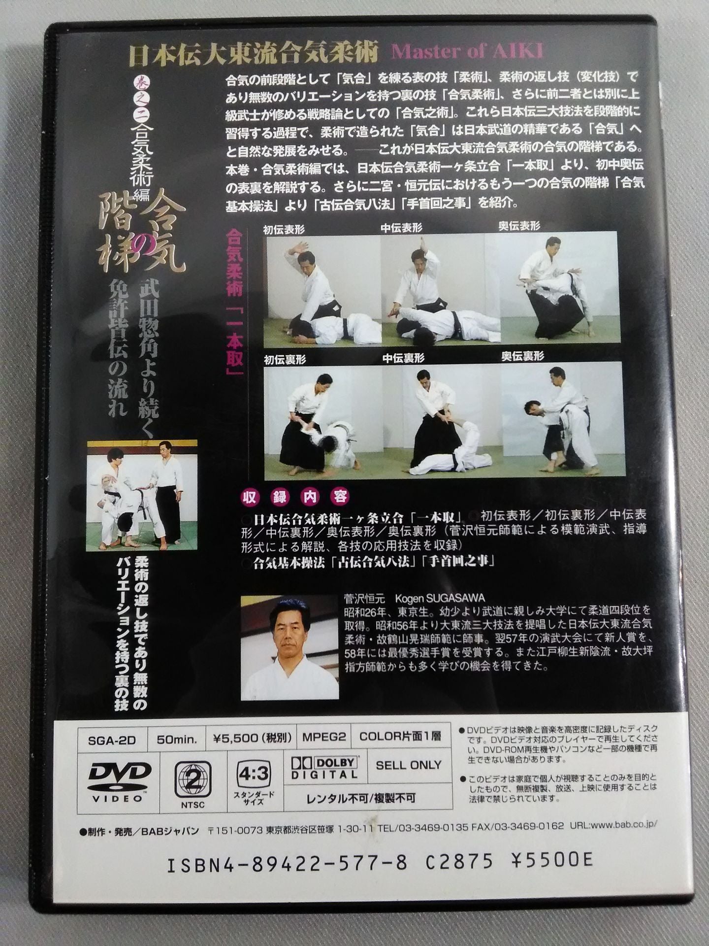 2000年 【収録内容】日本伝合気柔術一ヶ条立合「一本取」 初伝表形/初伝裏形/中伝表 形/中伝裏形/奥伝表形/奥伝裏形(菅沢恒元師範による模範演武、指導 形式による解説、各技の応用技法を収録) 合氣基本操法「古伝合気八法」「手首回之事」