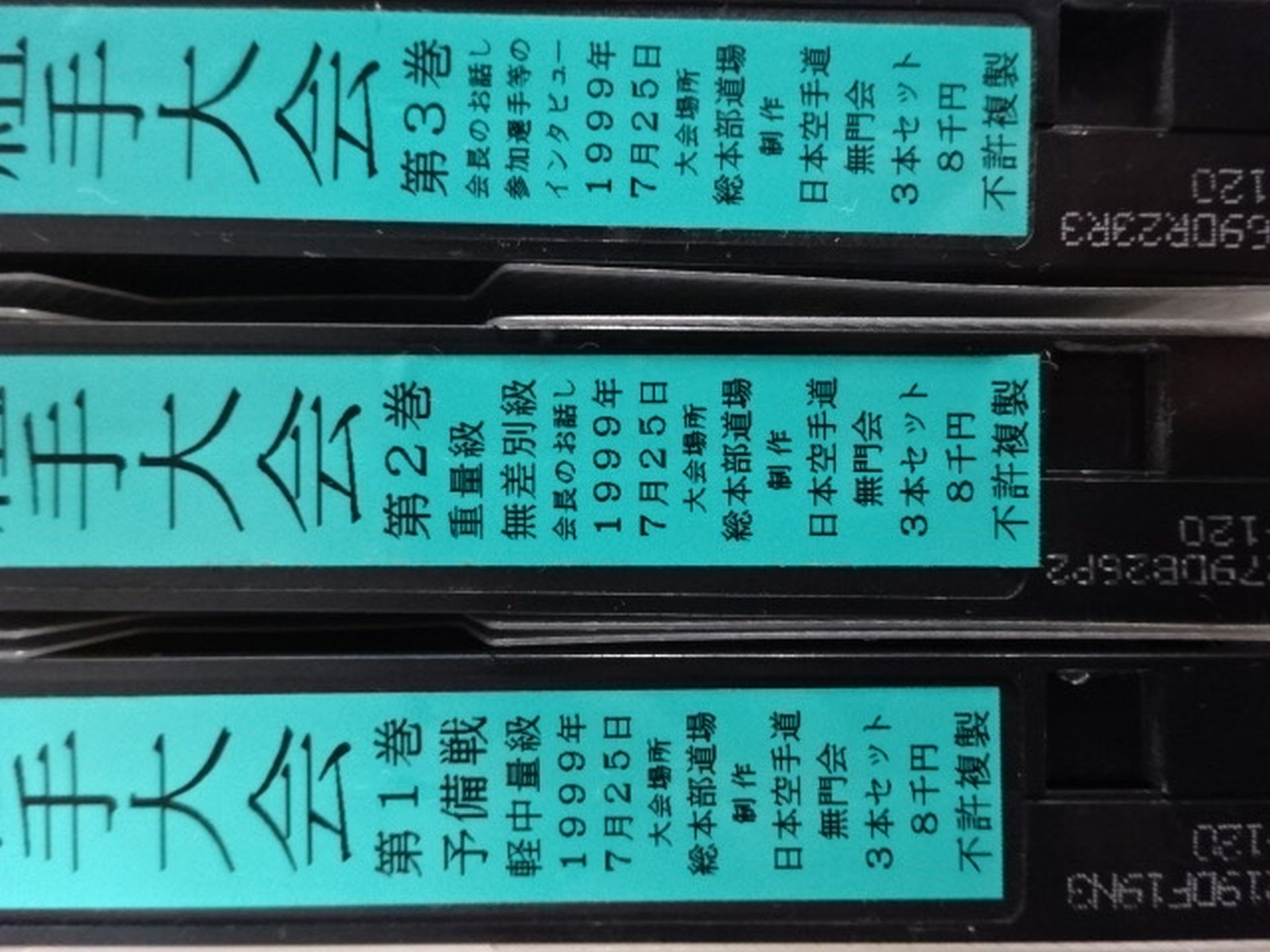 1999年 全3巻 日本空手道無門会 予備選、中量級、重量級、無差別級、会長のお話し、参加選手のインタビュー収録