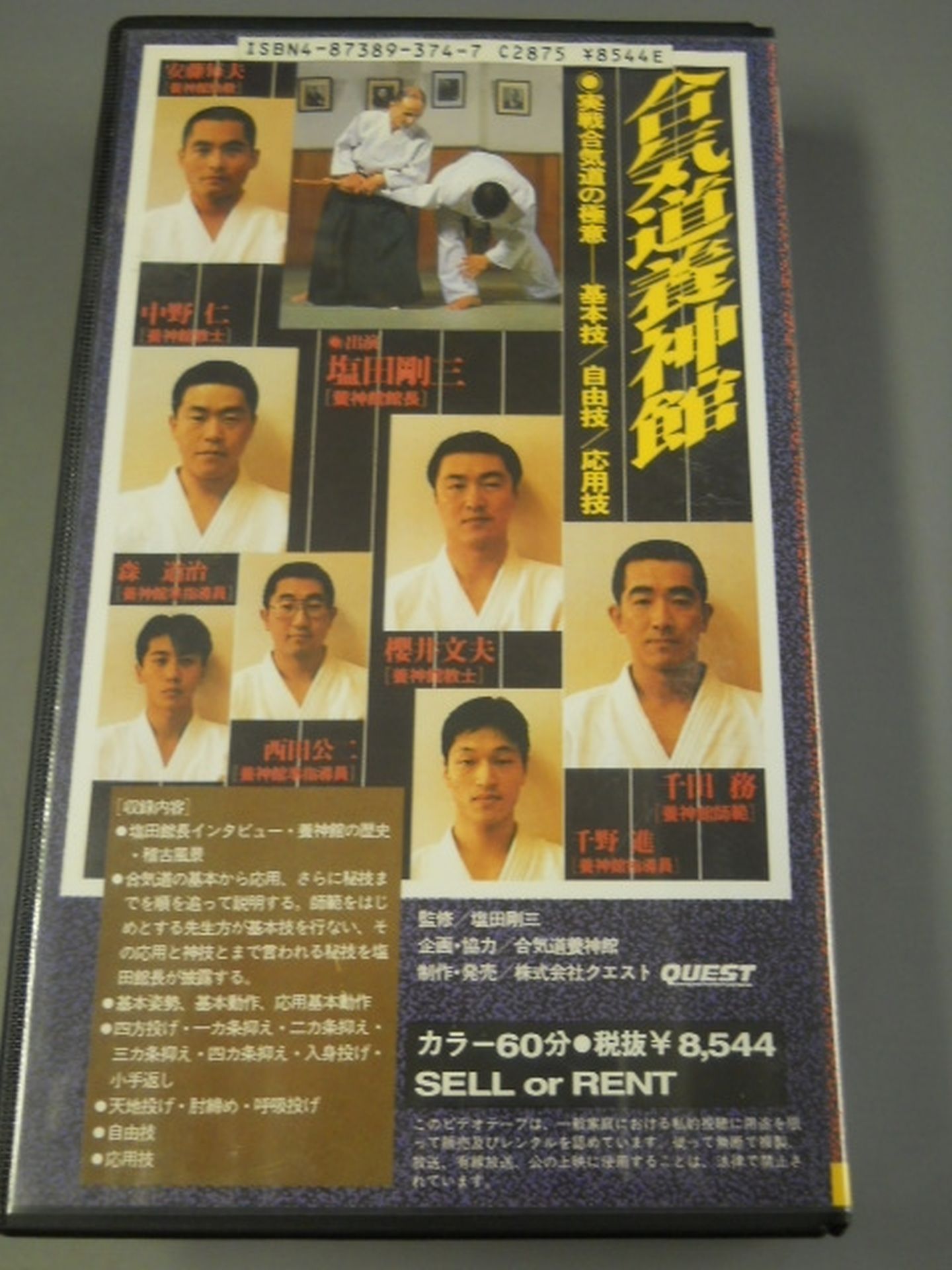 出演監修:塩田剛三 実戦合気道の極意-基本技、自由技、応用技 ○収録内容・塩田館長インタビュー&養神館の歴史&稽古風景/合気道の基本から応用、さらに秘技までを順を追って説明/基本姿勢、基本移動、応用基本動作/四方投げ/一ヶ条抑え/二ヶ条抑え/三ヶ条抑え/四ヶ条抑え/入身投げ/小手返し/天地投げ/肘締め/呼吸投げ/自由技/応用技など
