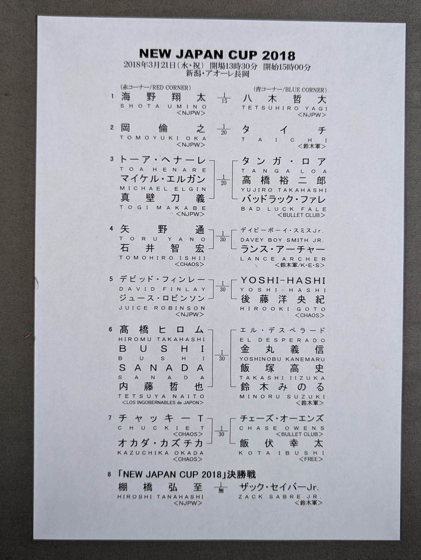 会場:新潟・アオーレ長岡 / 別紙対戦カードあり:【決勝戦】棚橋弘至vsザック・セイバーJr ※ザックが初優勝