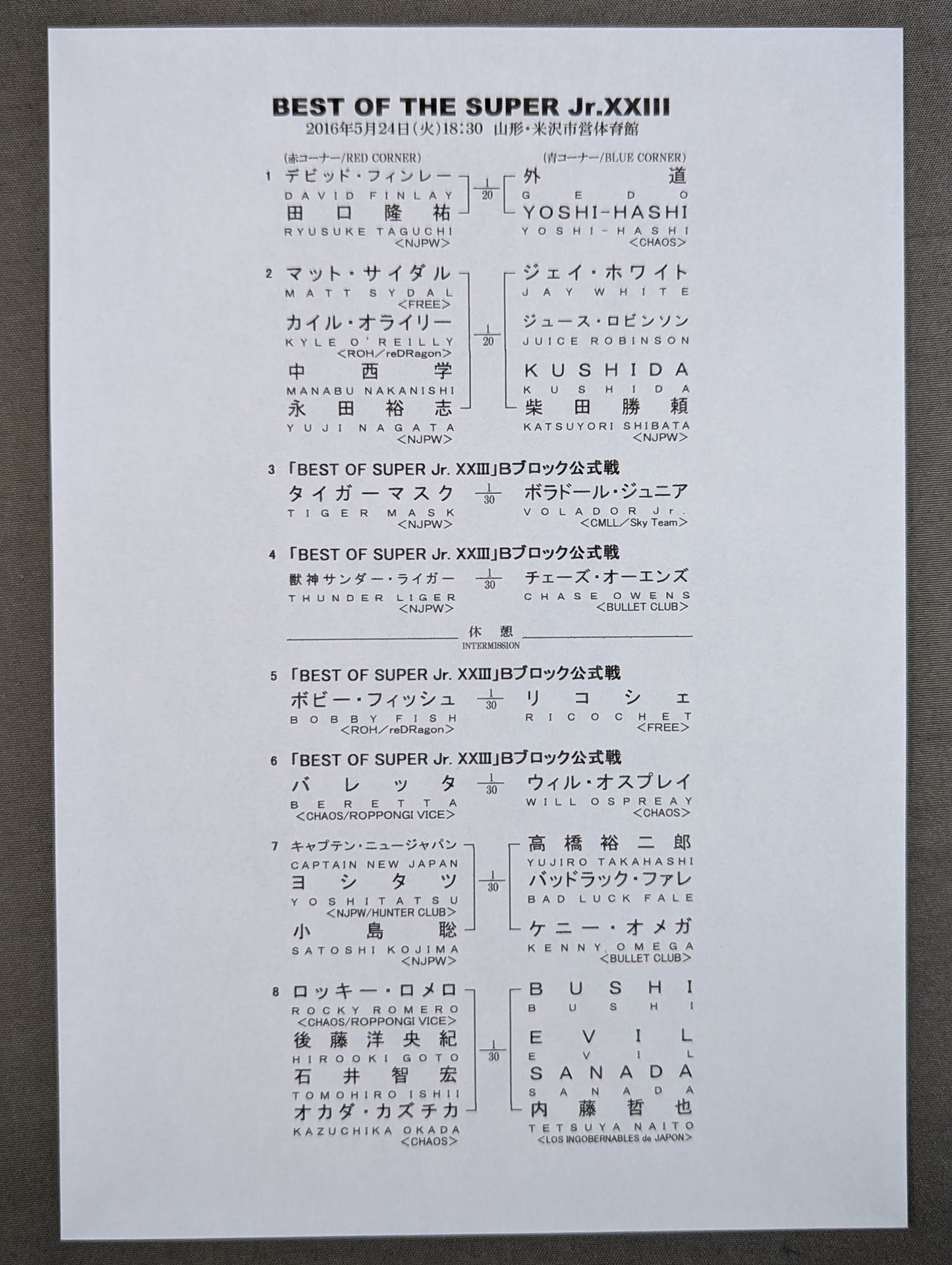 2016年 会場:後楽園ホール / 別紙対戦カードあり:【公式戦】リコシェvsウィル・オスプレイ / BEST OF THE SUPER Jr. XXⅢ / ベスト・オブ・ザ・スーパジュニア13