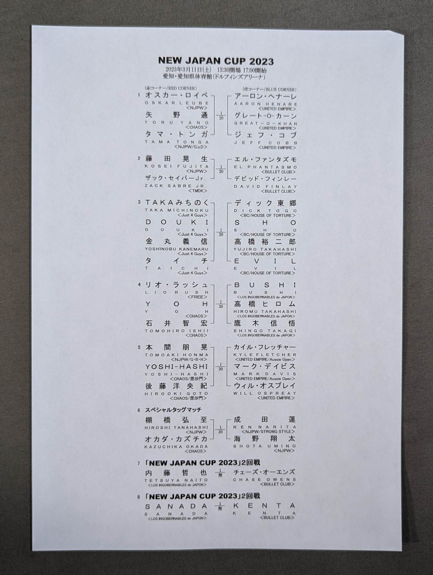 会場:愛知県体育館(ドルフィンズアリーナ) / 別紙対戦カードあり:【2回戦】SANADAvsKENTA / 【2回戦】内藤哲也vsチェーズ・オーエンズ / NEW JAPAN CUP 2023 / 旗揚げ記念日