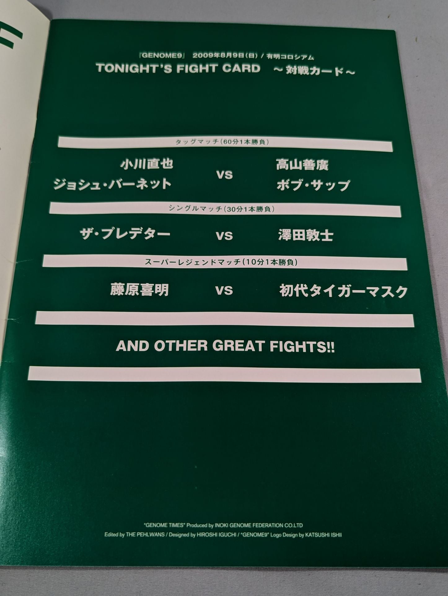 2009年 会場:有明コロシアム / 印刷対戦カード:小川直也&ジョシュ・バーネットvs高山善廣&ボブ・サップ / ザ・プレデターvs澤田敦士 / 藤原喜明vs初代タイガーマスク ゲノム9 / GENOME TIMES / アントニオ猪木インタビュー掲載