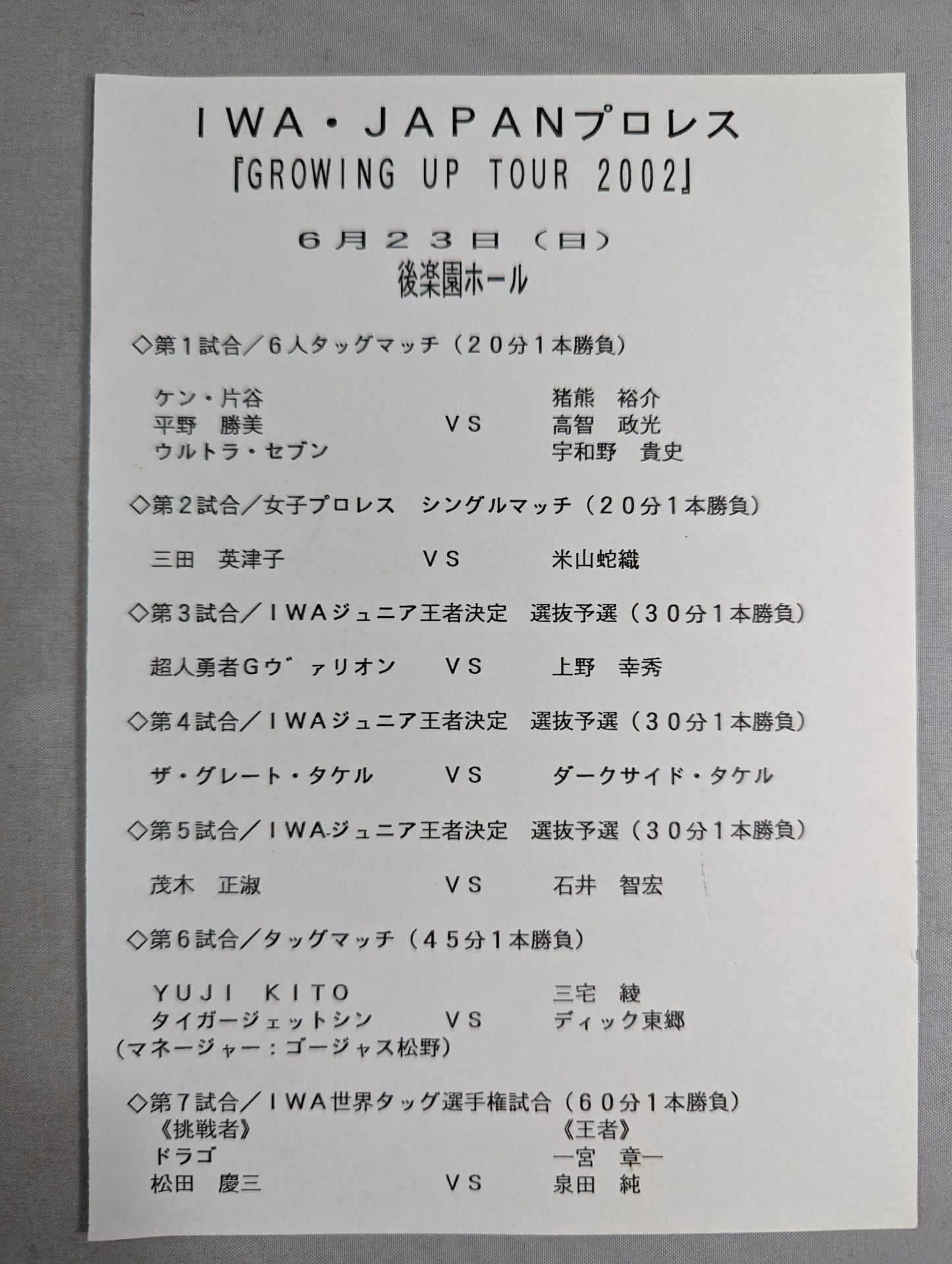 2002年 会場:後楽園ホール / 別紙対戦カードあり:【IWA世界タッグ選手権】一宮章一&泉田純vs松田慶三&ドラゴ GROWING UP TOUR 2002 / 2002 OFFICIAL GUIDE