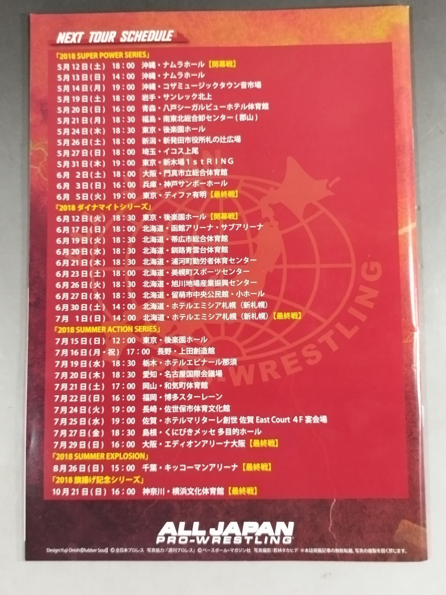 2018年 会場:仙台サンプラザホール(開幕戦) / スタンプあり:【公式戦】諏訪魔vsゼウス /【菊地毅デビュー30周年記念試合】菊地毅vsウルティモ・ドラゴン 蝦名和紀選手デビュー戦