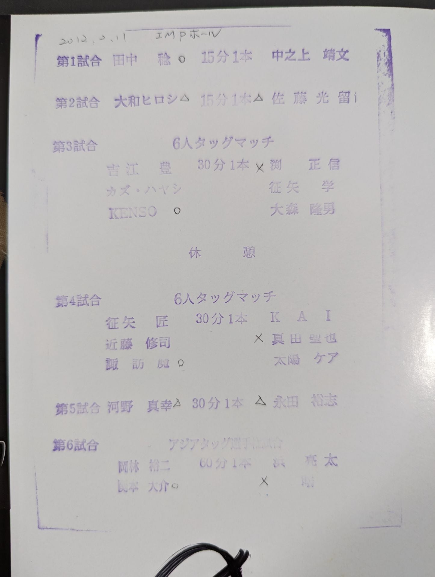 2012年 会場:大阪・松下IMPホール / スタンプあり:【アジアタッグ選手権】岡林裕二&関本大介vs曙&浜亮太
