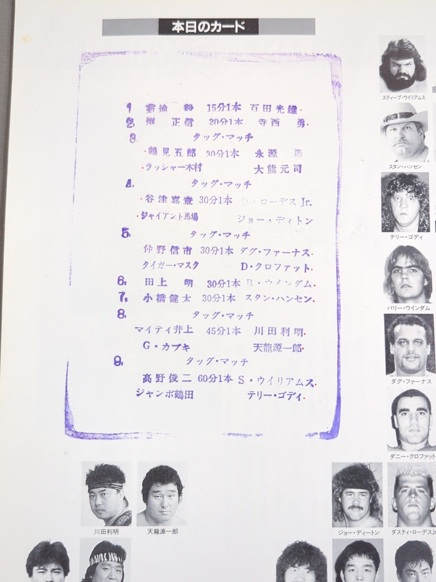 1990年 会場:後楽園ホール(開幕戦) / スタンプあり:ジャンボ鶴田&高野俊二vsテリー・ゴディ&スティーブ・ウイリアムス