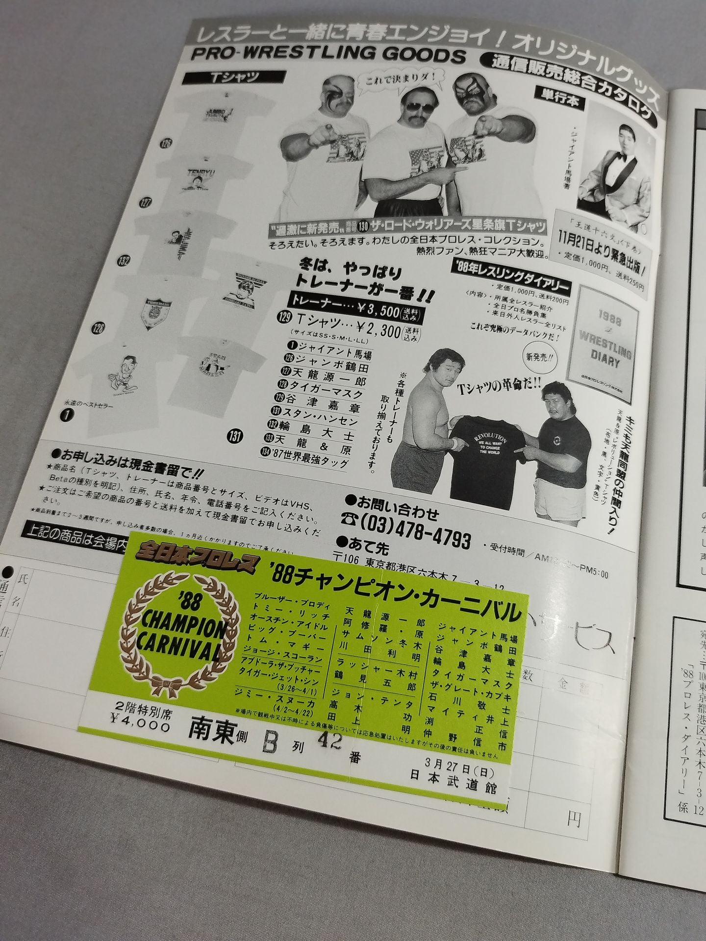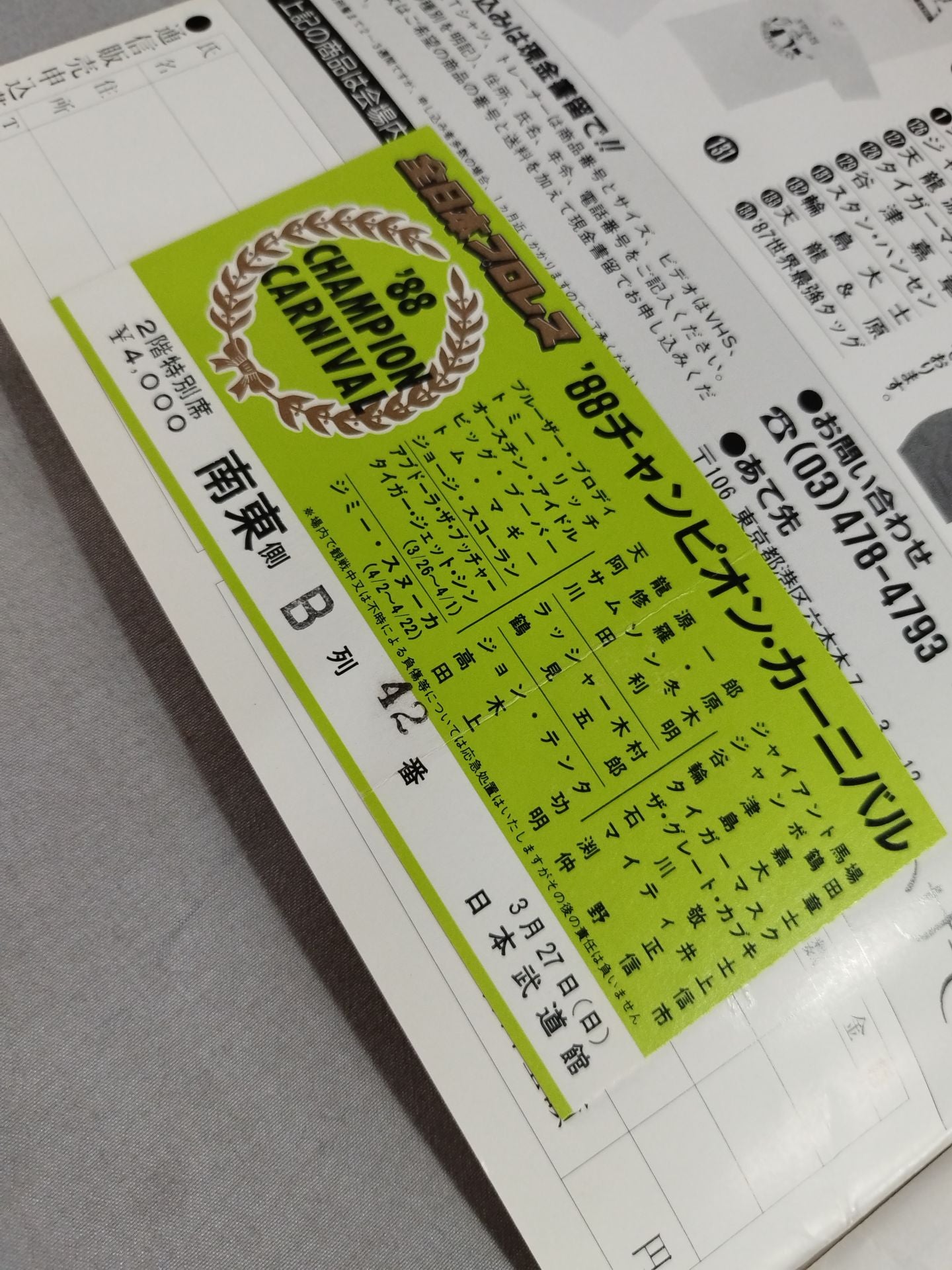 ★ブロディvs鶴田 インター戦・半券付★ 88チャンピオン・カーニバル