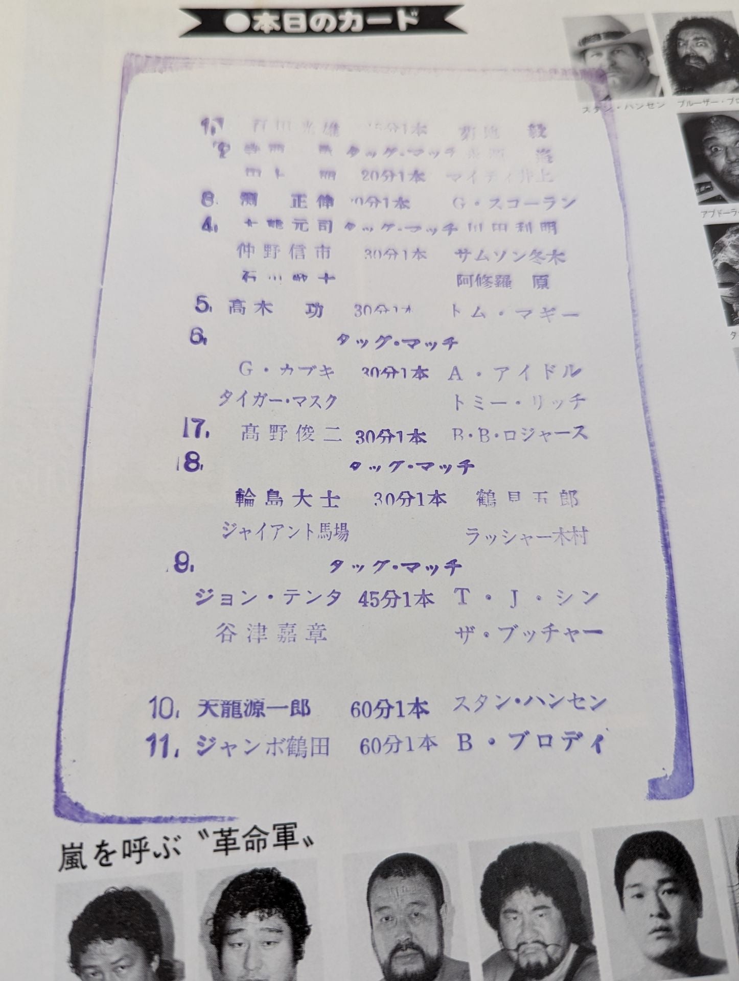 会場:日本武道館 / スタンプあり:【インターナショナルヘビー級選手権試合】ジャンボ鶴田vsブルーザ・ブロディ /【PWFヘビー級&UNヘビー級選手権試合】天龍源一郎vsスタン・ハンセン