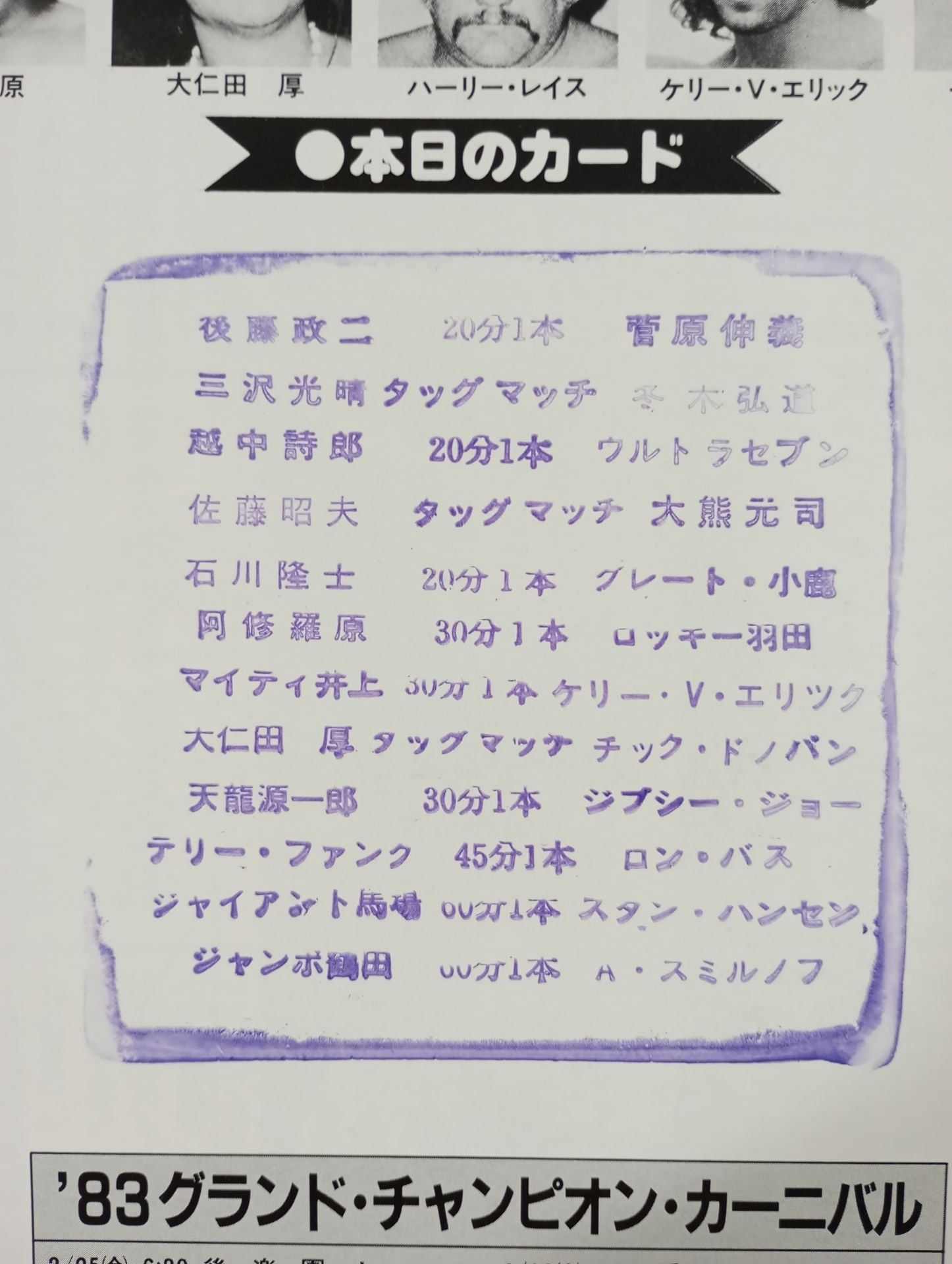 1983年 会場:広島県立体育館 / スタンプあり:【UNヘビー級選手権】ジャンボ鶴田vsアレックス・スミルノフ / ジャイアント馬場vsスタン・ハンセン
