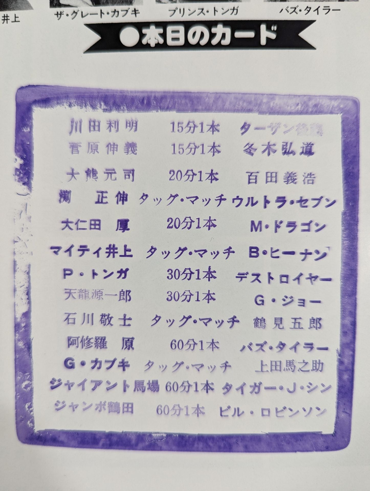 会場:大阪府立体育館 / スタンプあり:【インターナショナル・ヘビー級選手権試合】ジャンボ鶴田vsビル・ロビンソン / ジャイアント馬場&ザ・グレート・カブキvsタイガー・ジェット・シン&上田馬之助