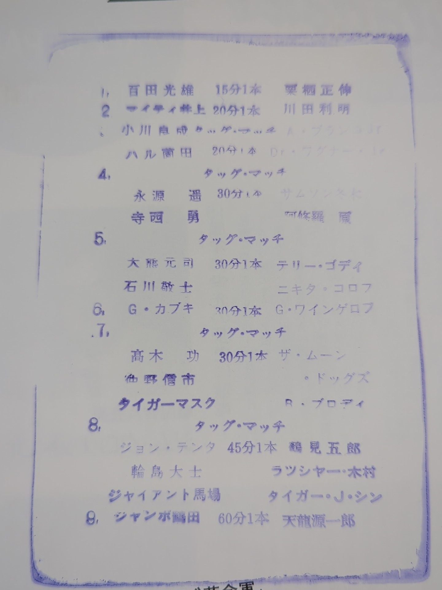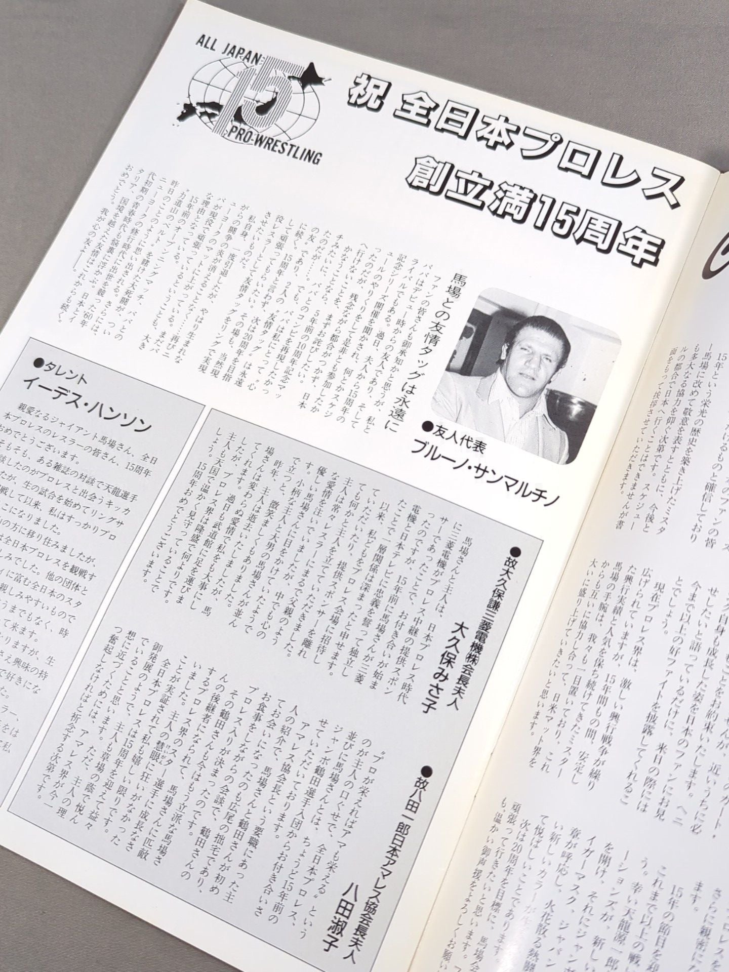 1987年 会場:日本武道館 / スタンプあり:ジャンボ鶴田vs天龍源一郎 / ジャイアント馬場&輪島大士&ジョン・テンタvsタイガー・ジェット・シン&ラッシャー木村&鶴見五郎 創立15周年記念