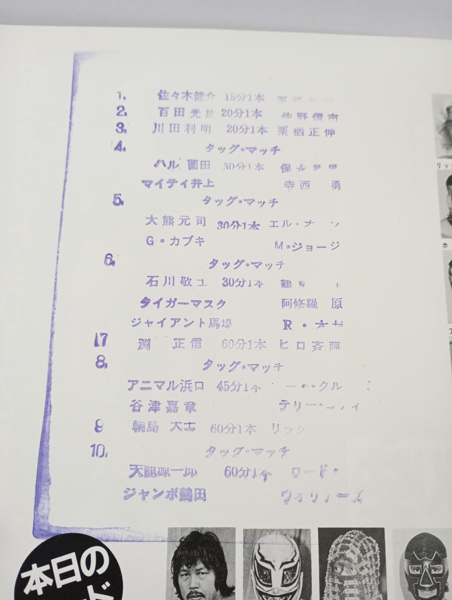 1987年 会場:日本武道館(最終戦) / スタンプあり:【インターナショナルタッグ選手権試合】天龍源一郎&ジャンボ鶴田vsザ・ロード・ウォリアーズ(ホーク・ウォリアー&アニマル・ウォリアー) /【NWA世界ヘビー級選手権試合】輪島大士vsリック・フレアー