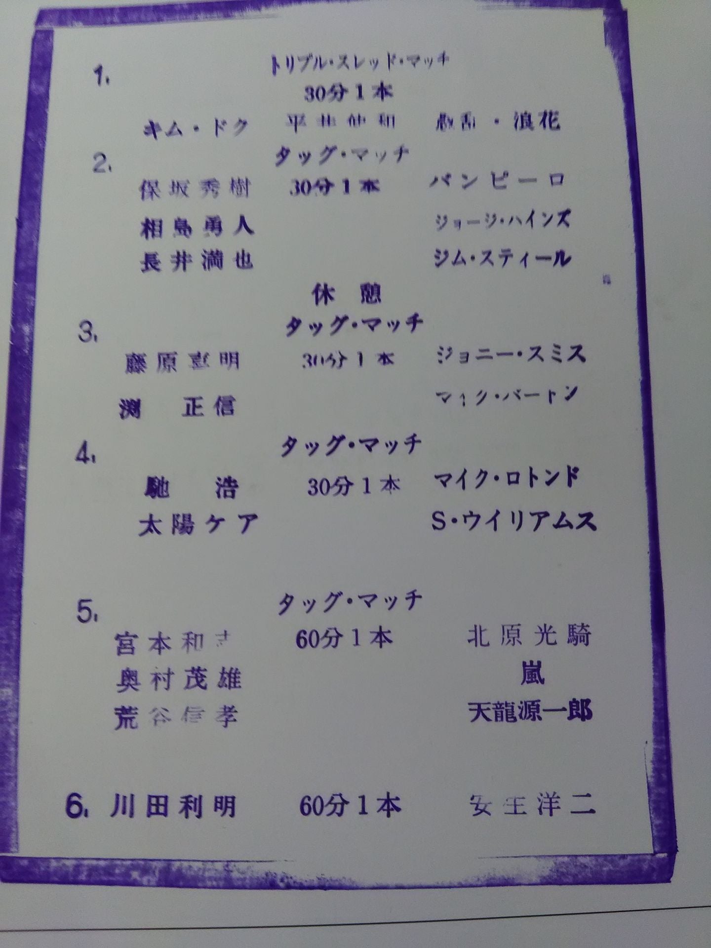2001年 会場:後楽園ホール(開幕戦) / スタンプあり:川田利明vs安生洋二 / 荒谷信孝&奥村茂雄&宮本和志vs天龍源一郎&嵐&北原光騎 / 太陽ケア&馳浩vsスティーブ・ウィリアムス& マイク・ロトンド