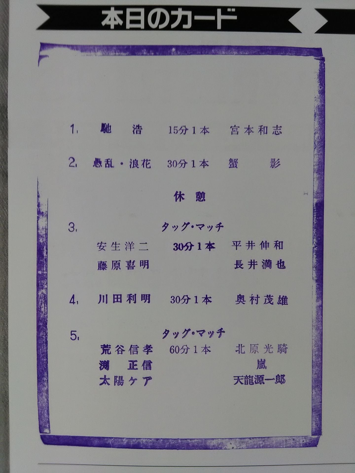 2001年 会場:後楽園ホール / スタンプあり:荒谷望誉&渕正信&太陽ケアvs天龍源一郎&北原光騎&嵐 夏休みファン感謝デー