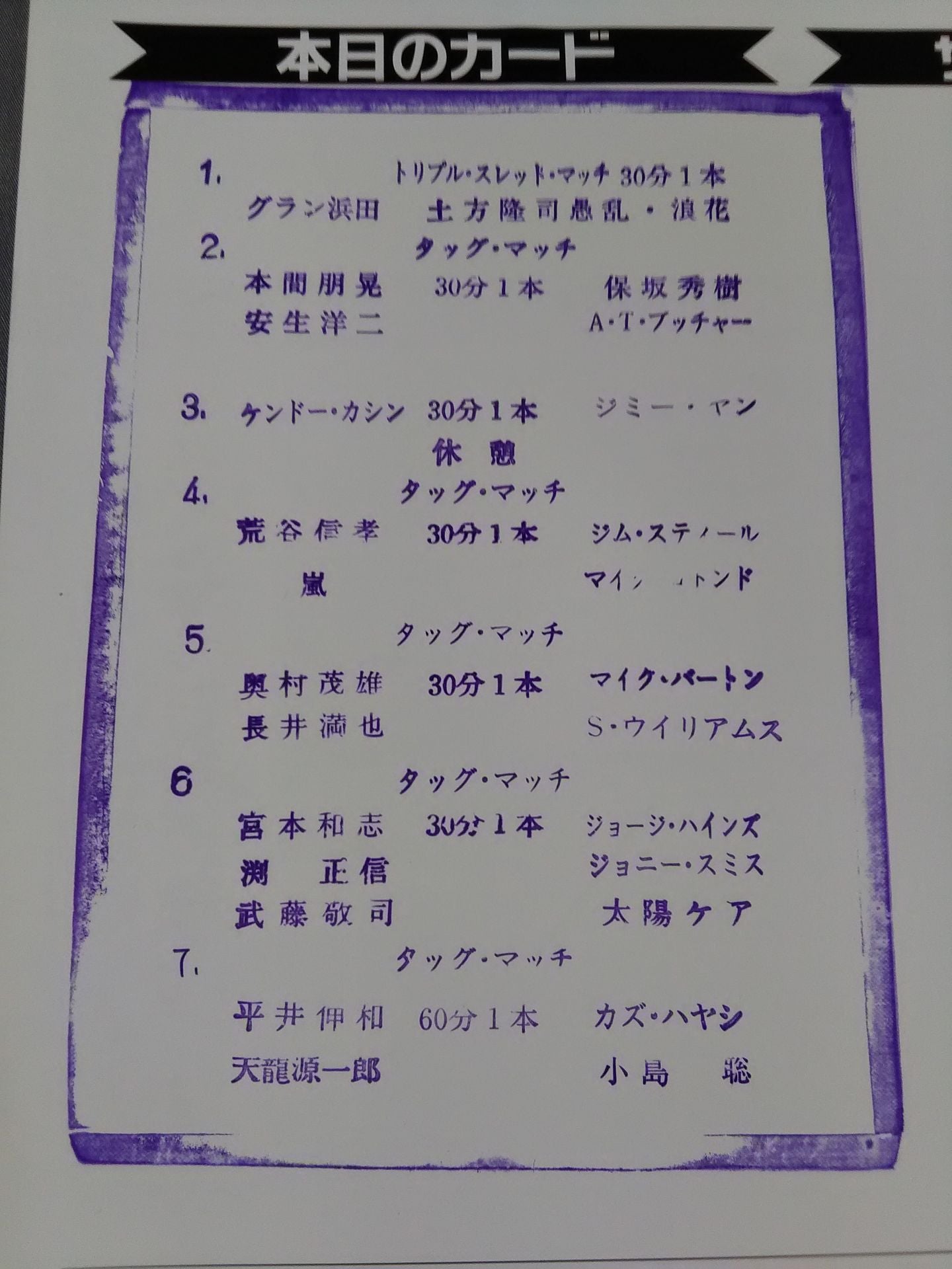 2002年 会場;後楽園ホール(開幕戦) / スタンプあり:天龍源一郎&平井伸和vs小島聡&カズ・ハヤシ / 武藤敬司&渕正信&宮本和志vs太陽ケア&ジョニー・スミス&ジョージ・ハインズ