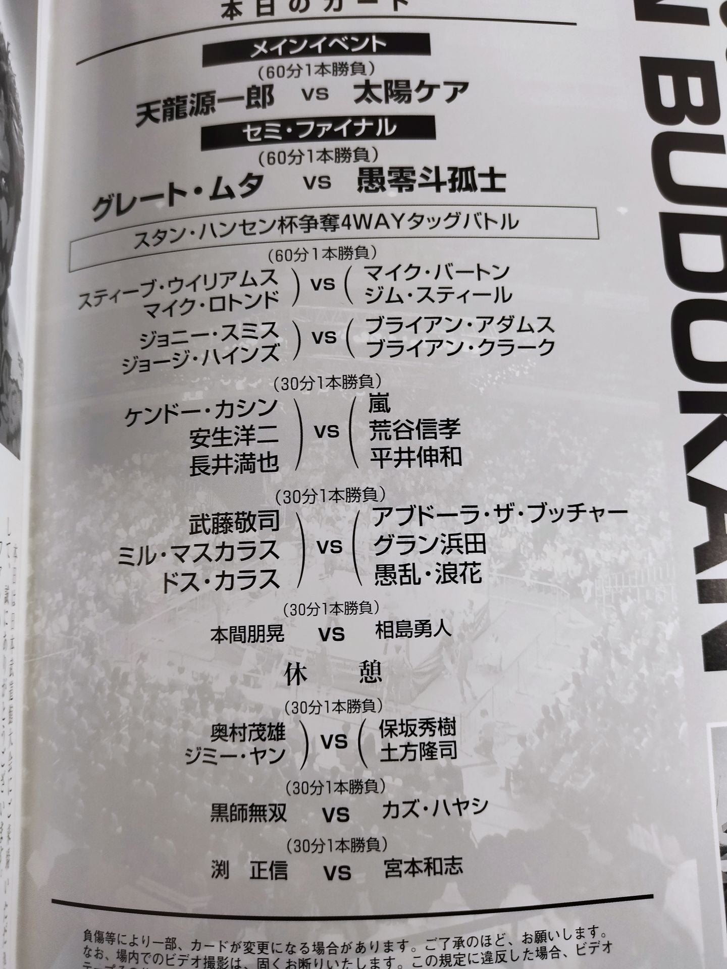 2002年 会場:日本武道館(1st BATTLE) / 印刷対戦カード:天龍源一郎vs太陽ケア / グレート・ムタvs愚零斗孤士(グレート・コジ=小島聡?)