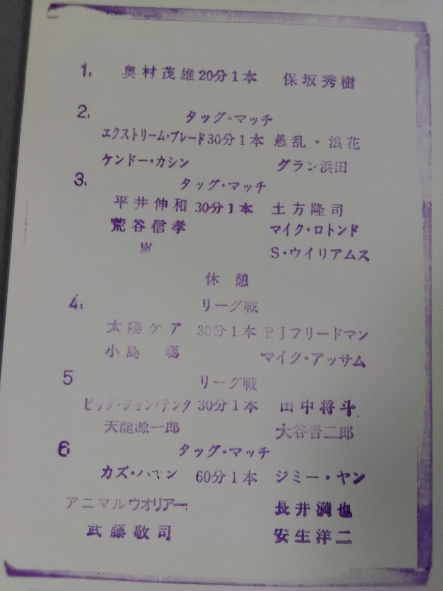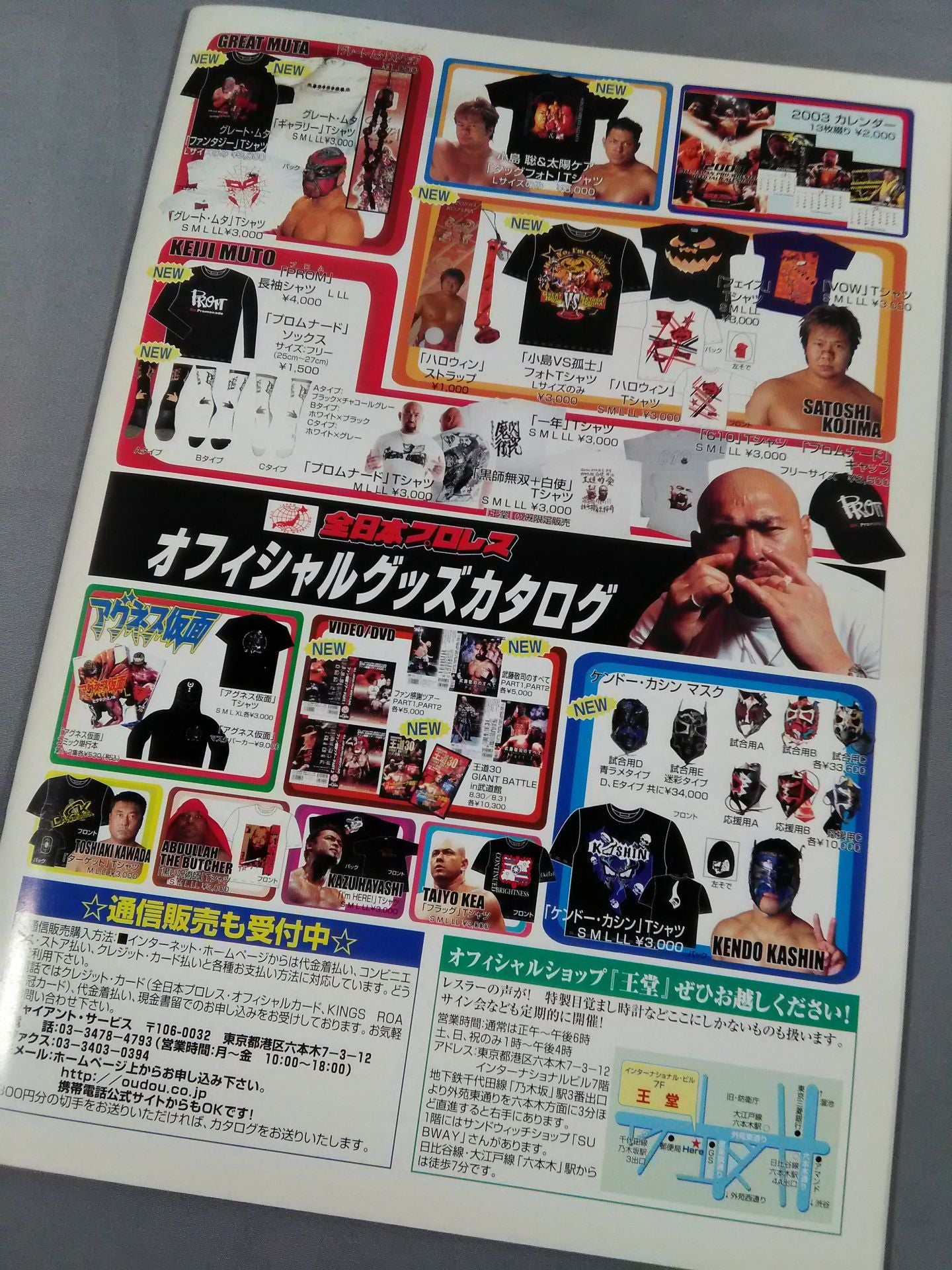 2002年 会場:大阪府立体育会館第2競技場 / スタンプあり:武藤敬司&アニマル・ウォリアー&カズ・ハヤシvs安生洋二&長井満也&ジミー・ヤン /【公式戦】天龍源一郎&ビッグ・ジョン・デンタvs大谷晋二郎&田中将人