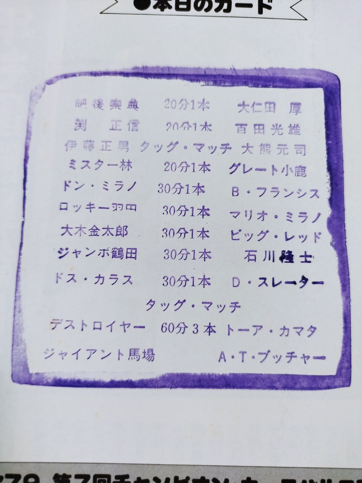 1979年 スタンプあり:ジャイアント馬場&ザ・デストロイヤーvsアブドーラ・ザ・ブッチャー&キラー・トーア・カマタ /【公式戦】ドス・カラスvsディック・スレータ