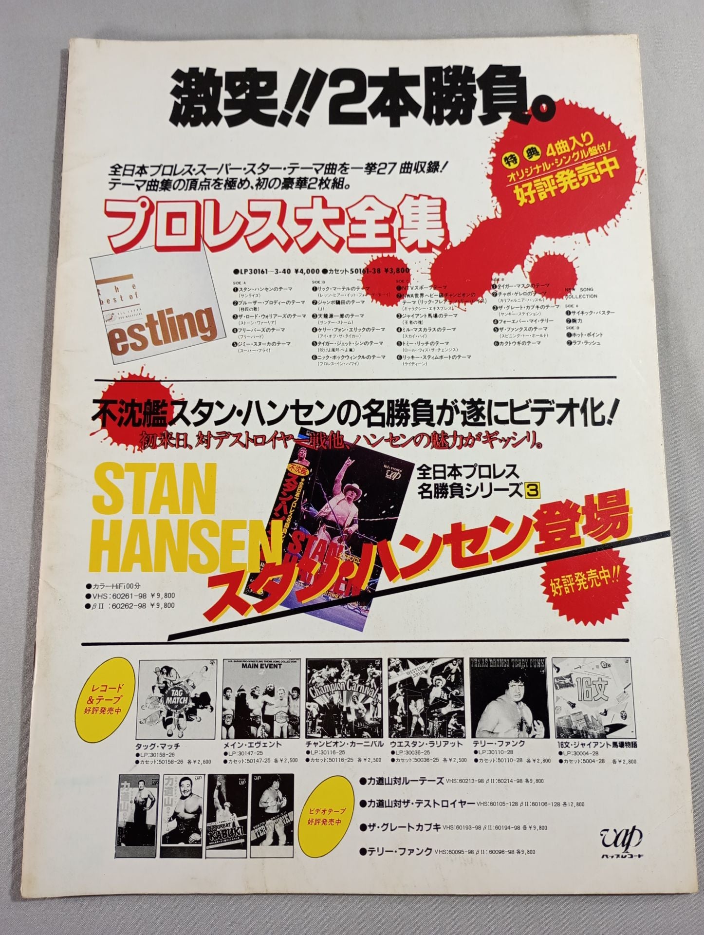 1985年 会場:神奈川・大船駅前ニチイ駐車場特設リング / スタンプあり:ジャイアント馬場&ジャンボ鶴田&天龍源一郎vsタイガー・ジェット・シン&テリー・ゴディ&マリオ・ミラノ