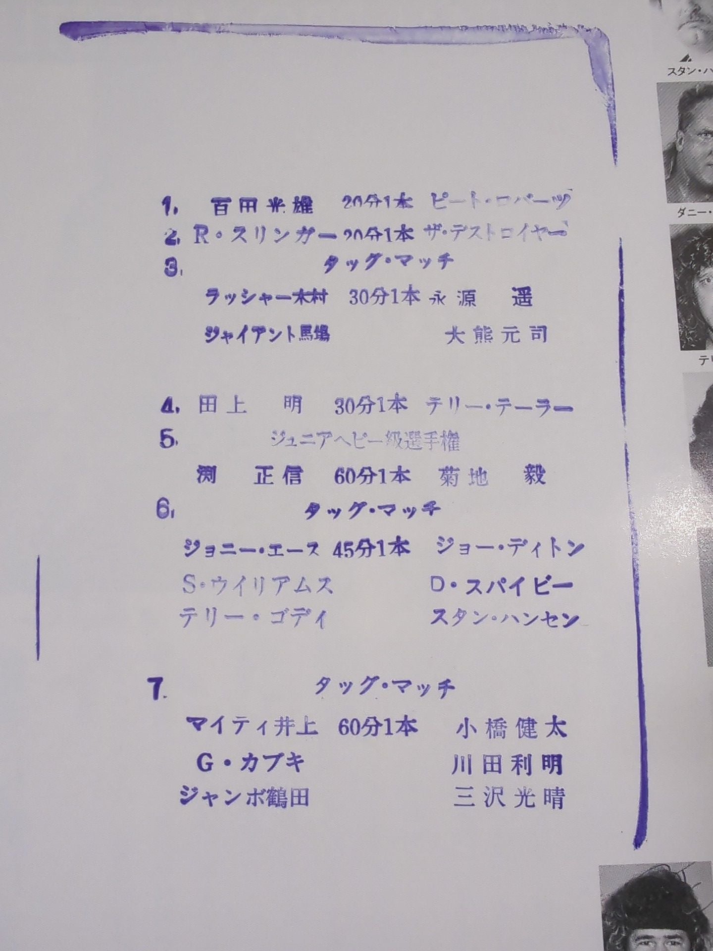 1990年 会場:後楽園ホール / スタンプあり:ジャンボ鶴田&ザ・グレート・カブキ&マイティ井上vs三沢光晴&川田利明&小橋健太 / 【世界ジュニア・ヘビー級選手権】渕正信vs菊地毅 ★ブロディ・メモリアル・ナイト★