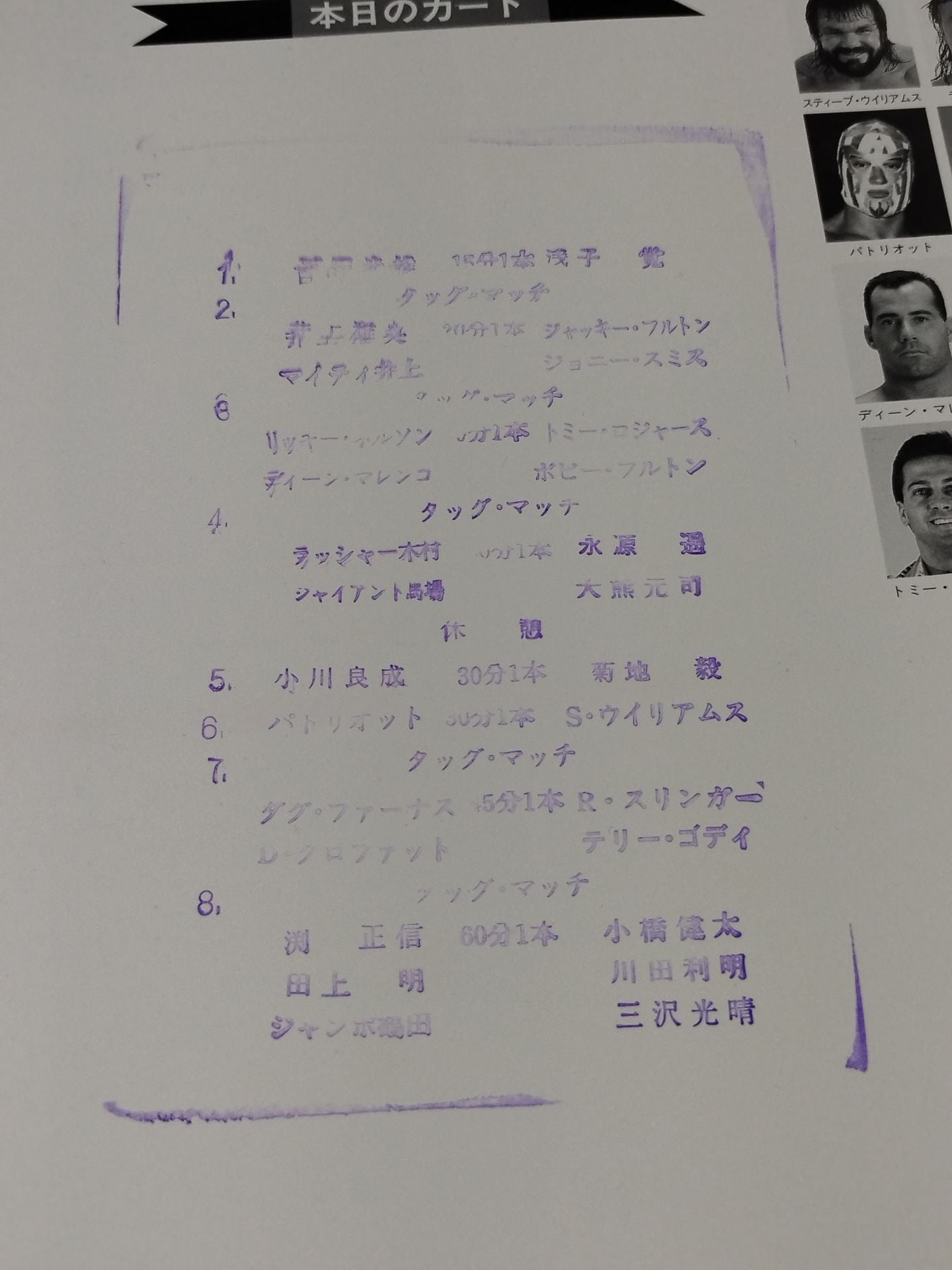 1992年 会場:札幌中島体育センター / スタンプあり:ジャンボ鶴田&田上明&渕正信vs三沢光晴&川田利明&小橋健太