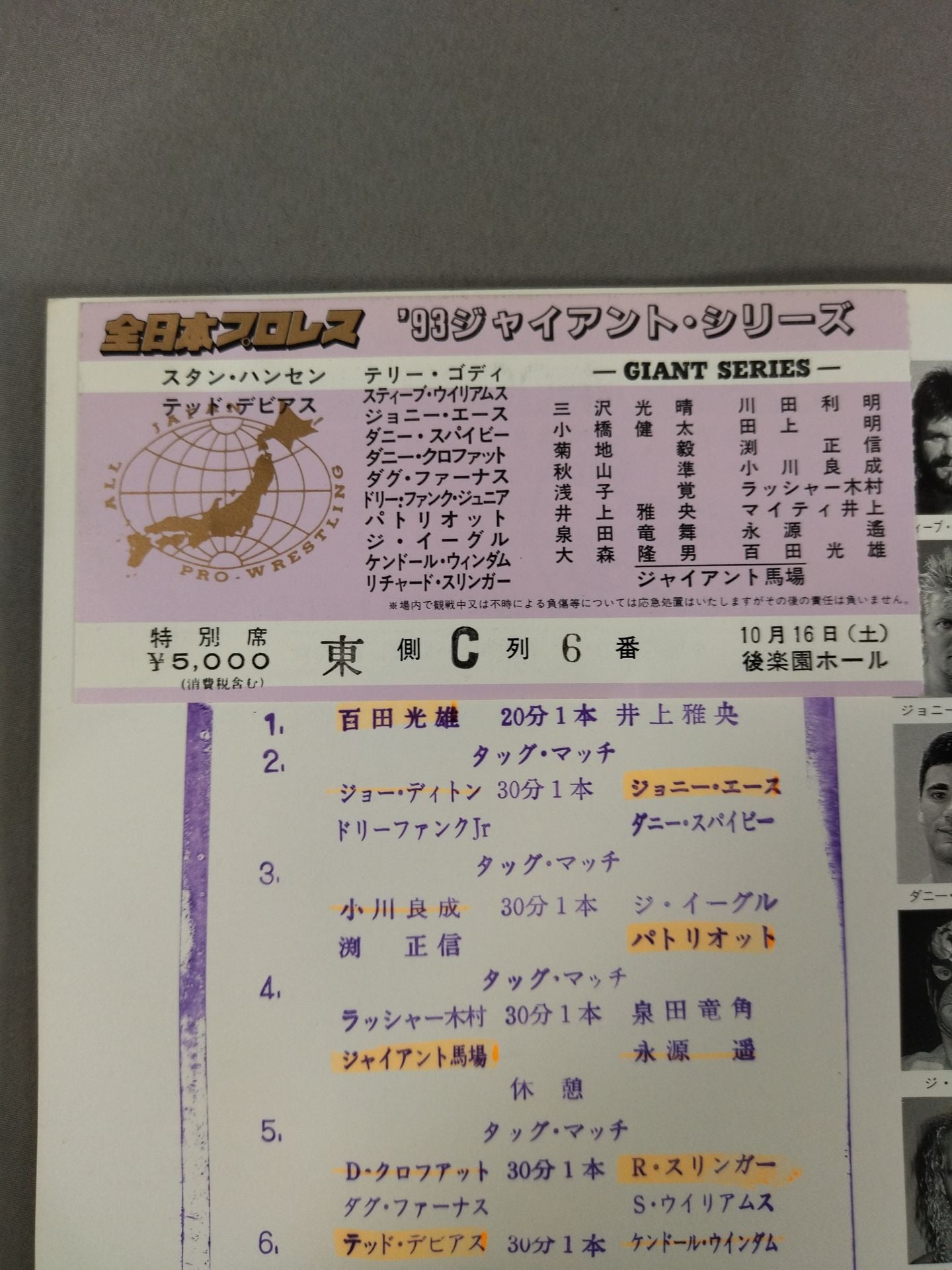 1993年 会場:後楽園ホール / スタンプあり:三沢光晴&秋山準vsスタン・ハンセン&ビッグ・ブーバー