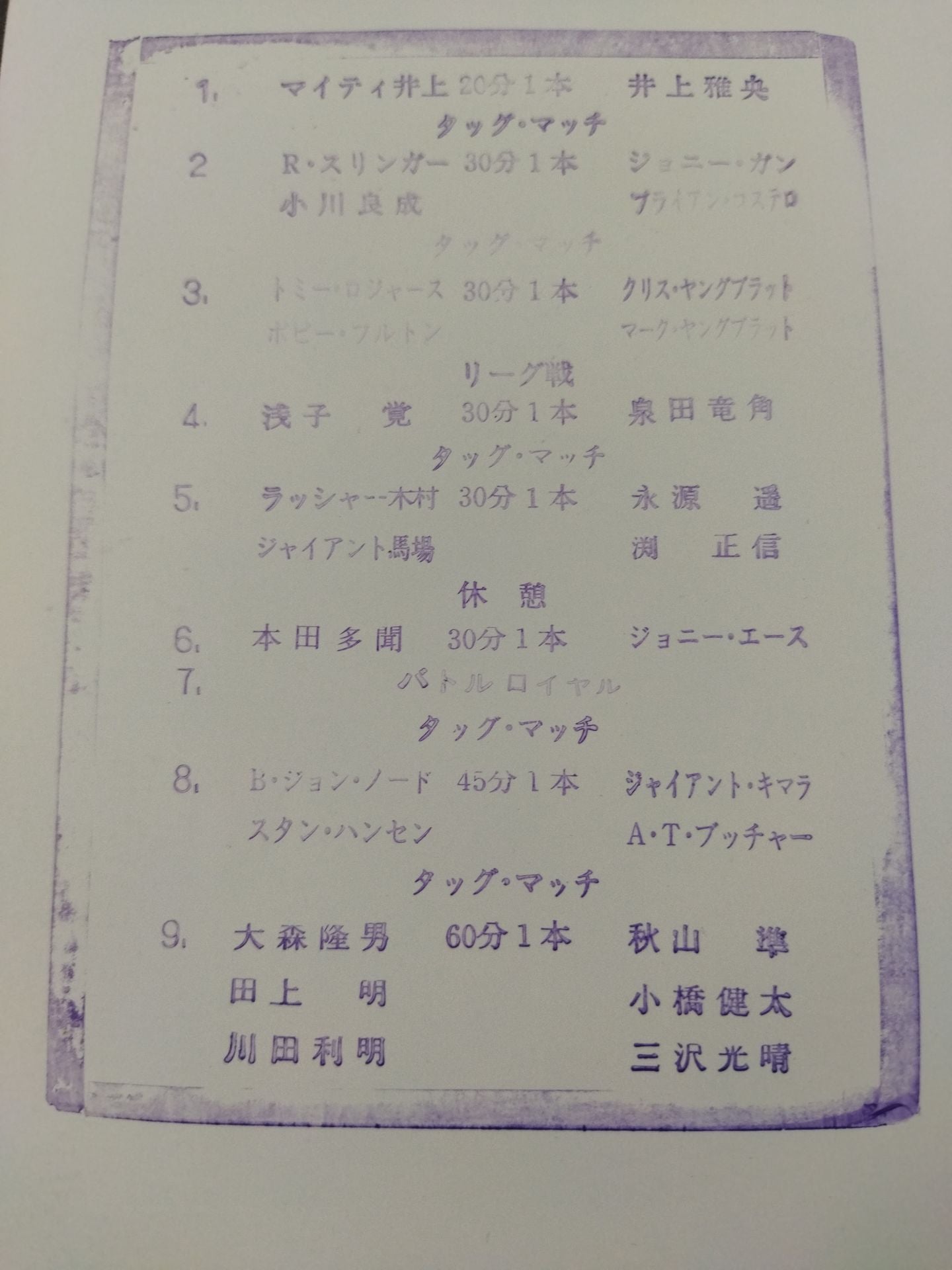 1994年 会場:後楽園ホール / スタンプあり:川田利明&田上明&大森隆男vs三沢光晴&小橋健太&秋山準