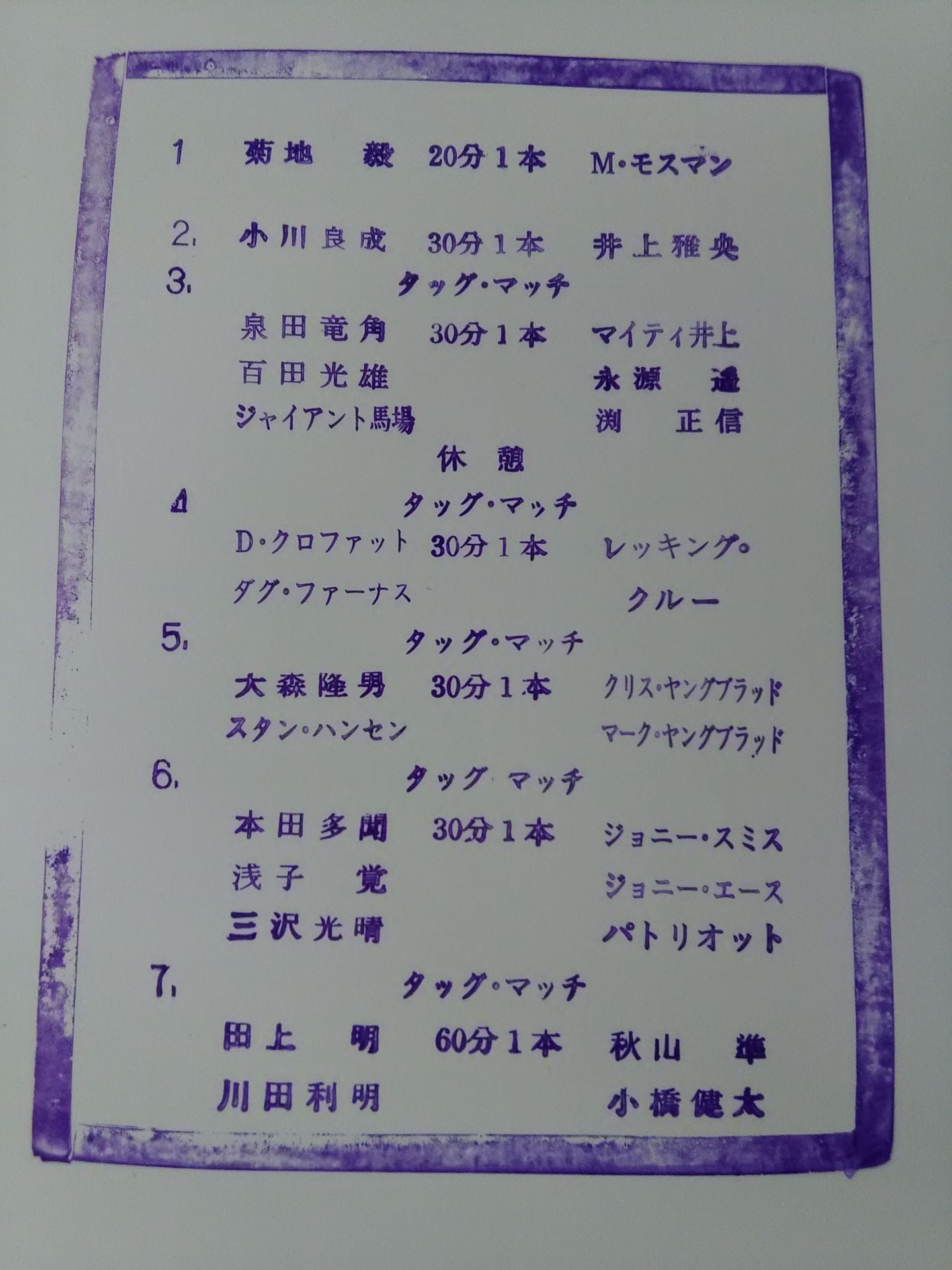 1995年 会場:岡山・笠岡市民体育センター / スタンプあり:川田利明&田上明vs小橋健太&秋山準 / 三沢光晴&浅子覚&本田多聞vsパトリオット&ジョニー・エース&ジョニー・スミス